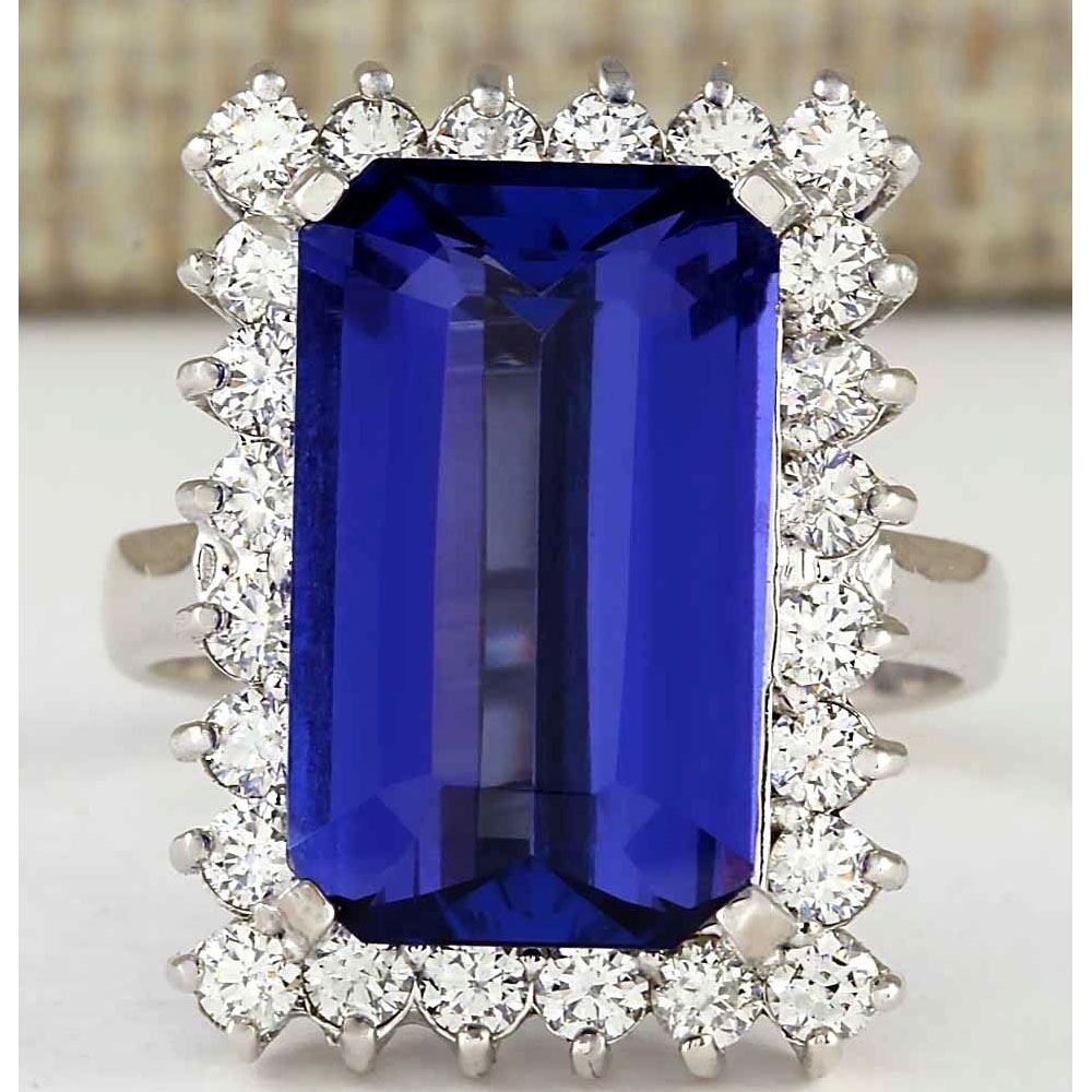 9.05 CTW Natural Blue Tanzanite And Diamond Ring 18K Solid White Gold