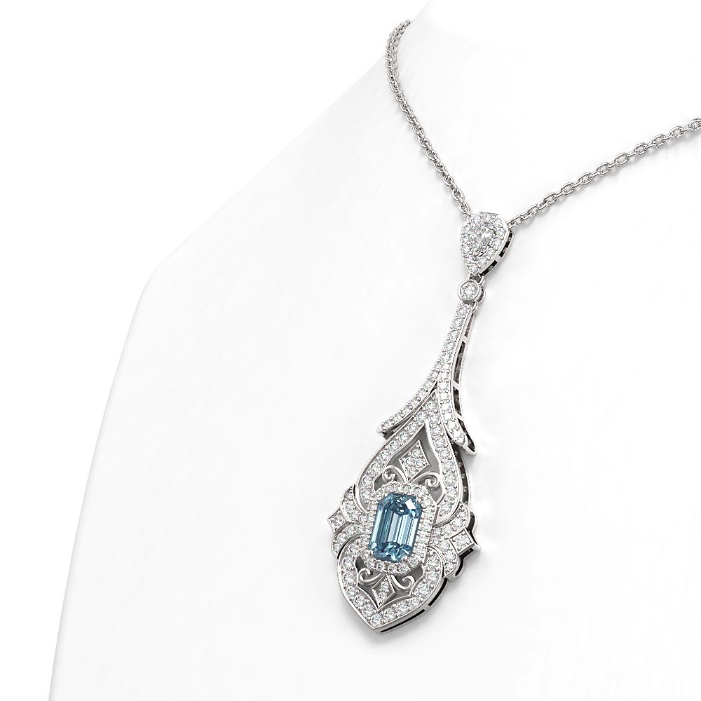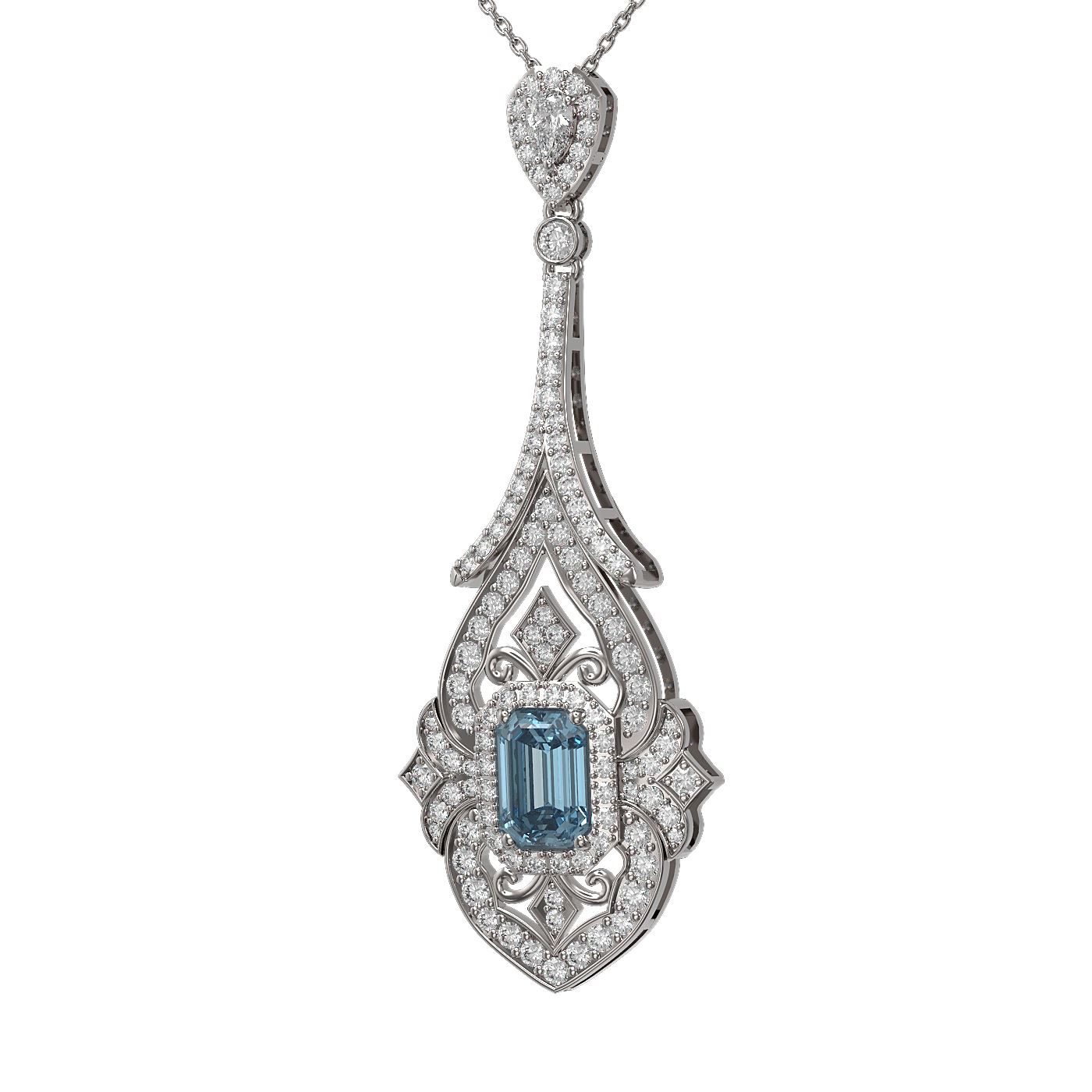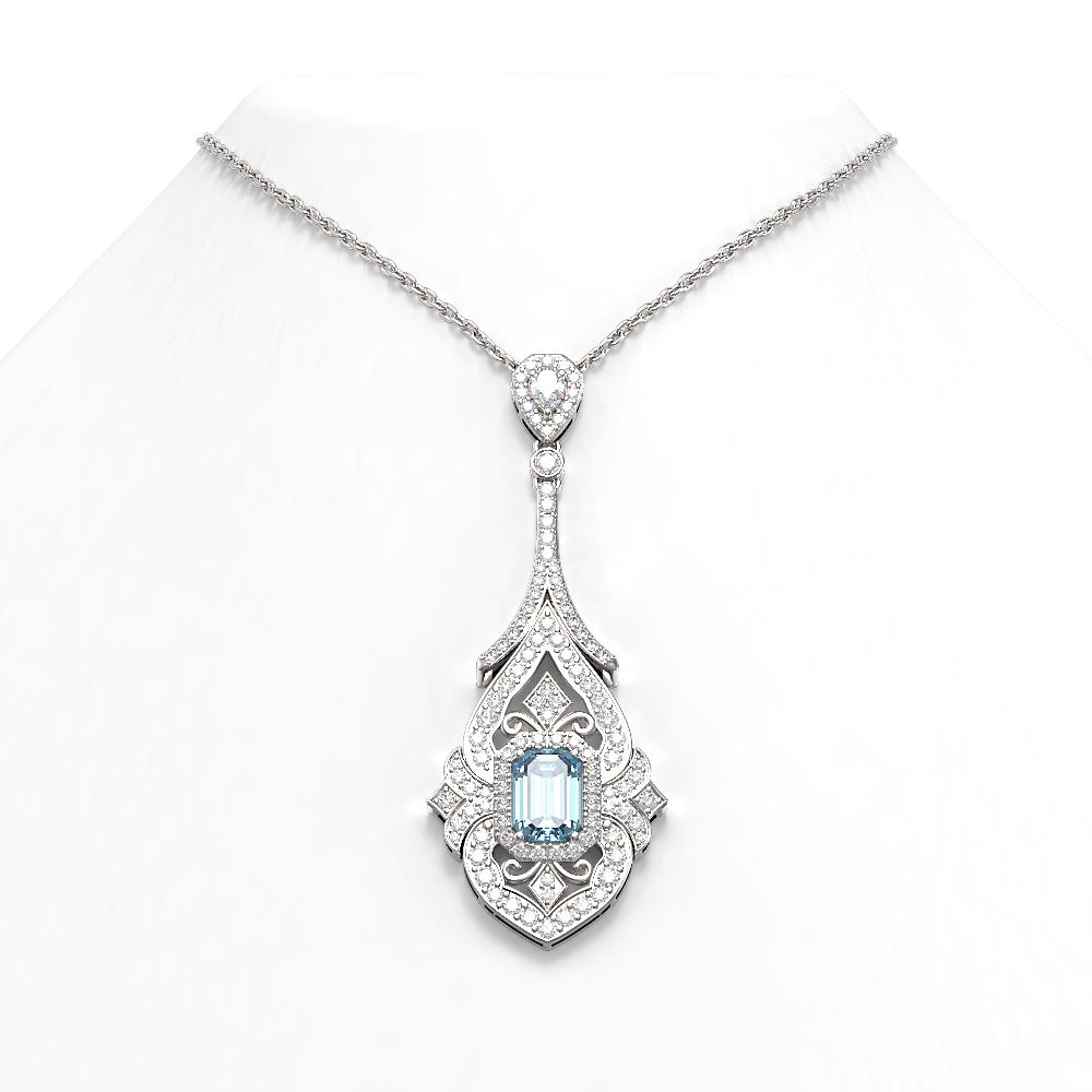 REF-527Y3X - SKU: 54284 ---- 9.05 ctw Aquamarine & Diamond Necklace 18K White Gold