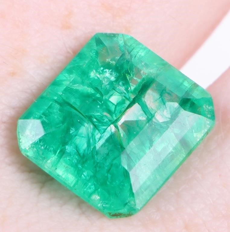9.05CT cushion rectangular emerald gemstone. Gemstone has been electronically verified. Tester does not distinguish between natural and lab grown.