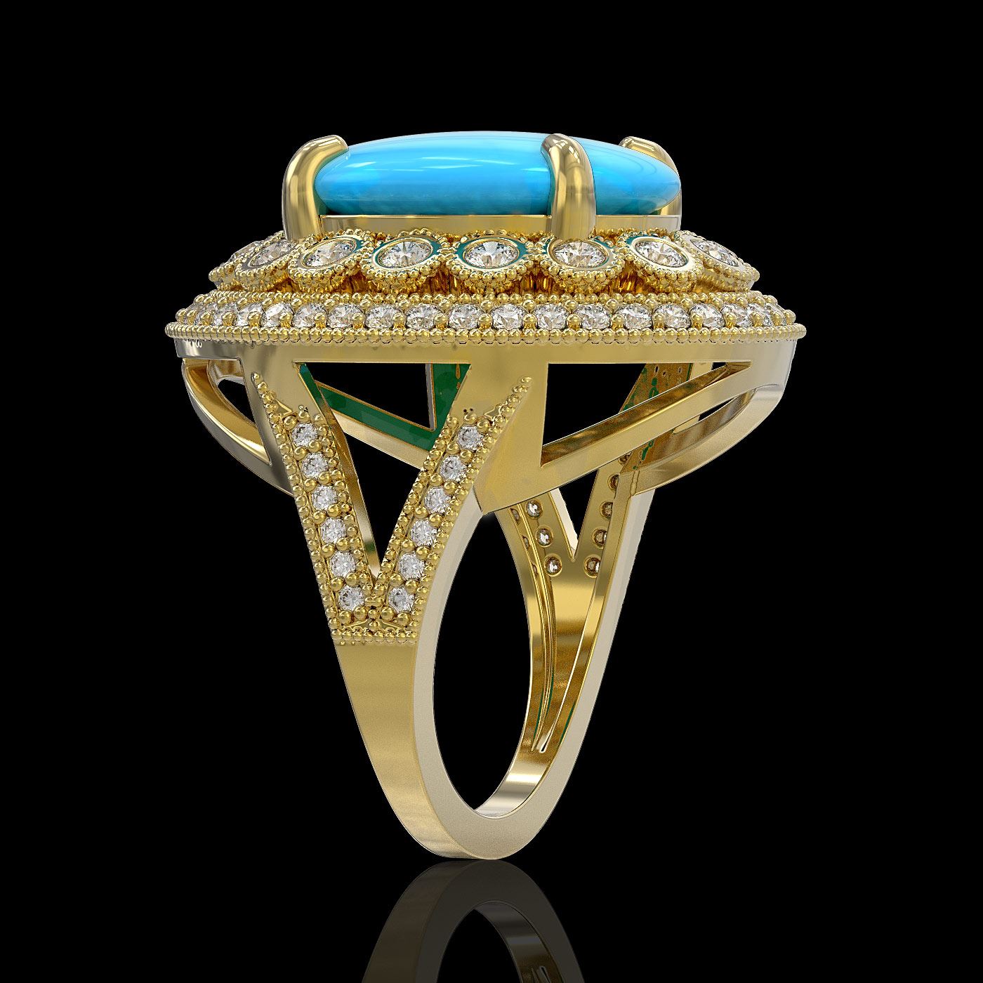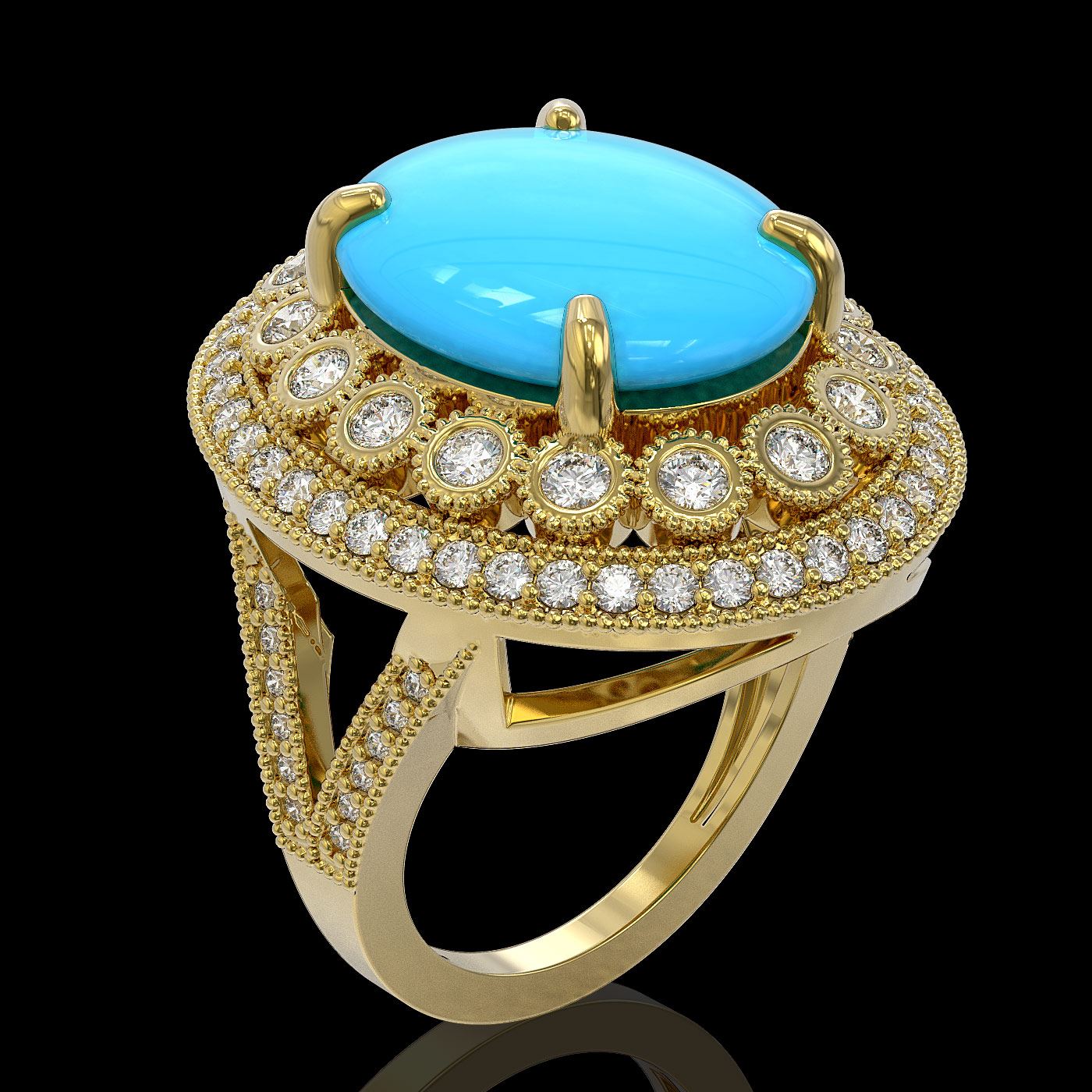 REF-245X5A - SKU: 46130 ---- 9.07 ctw Turquoise & Diamond Victorian Ring 14K Yellow Gold