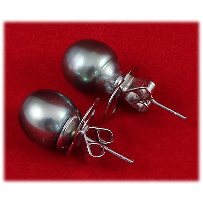 9.0MM Round Stud Earring South Sea Pearl **|**|** Philippine South Sea Pearl Black Color Stud Earring 9.0mm with 14K White Gold Post and Back. ; MSRP: $300