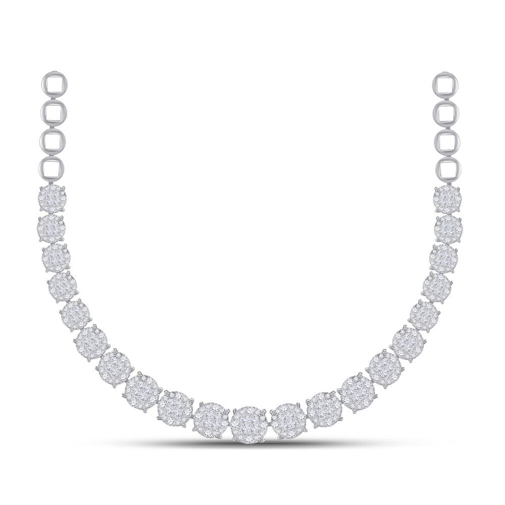 REF-899K9R ---- 9 & 1/2 CTW Princess Diamond Luxury Cluster Necklace 14kt White Gold