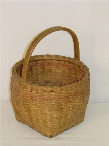 9 1/2" HANDLED SPLINT BASKET W/ PAINTED RED BAND - LOSSES & IMPERFECTIONS