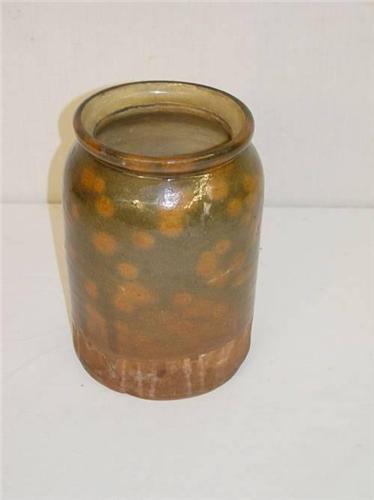 9 1/2" NEW ENGLAND REDWAR JAR W/ SPOTTED GREEN GLAZE - MINOR IMPERFECTIONS;