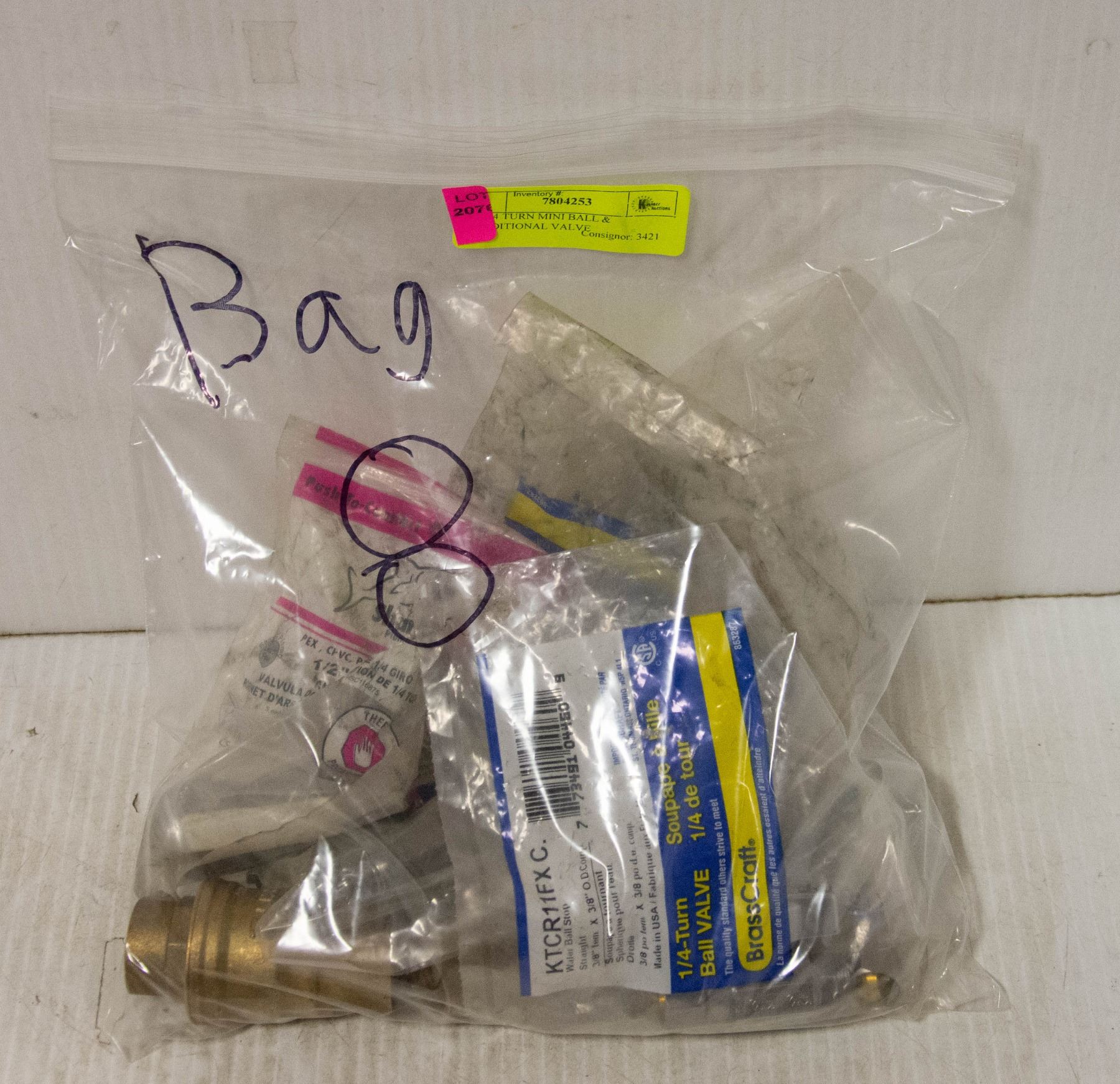 VARIOUS SIZES 3/8" x 3/8" - 1; 1/2" x 3/8" - 5; 1/4" x 1/2" - 1; STOP TEE 1/2" x 1/2" X 3/8" - 1; STOP TEE 1/2" x 1/2" x 1/4" - 1. MOST IN ORIGINAL PACKAGE A FEW ARE LOOSE. **ALL ITEMS MUST BE REMOVED BY 5PM SATURDAY, JUNE 17TH 2023. ALL REMAINING ITEMS WILL BE SUBJECT TO A $6.00 PER DAY STORAGE CHARGE. ANY ITEMS REMAINING AFTER MONDAY, JULY 3RD, 2023 WILL BE CONSIDERED FORFEITED. NO REFUNDS WILL BE ISSUED FOR FORFEITED ITEMS. TO SCHEDULE A PICK UP APPOINTMENT CLICK HERE