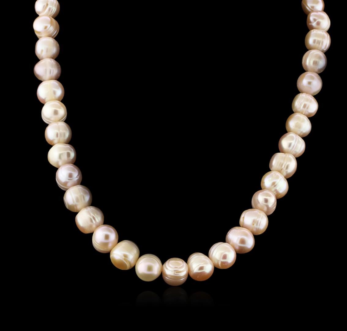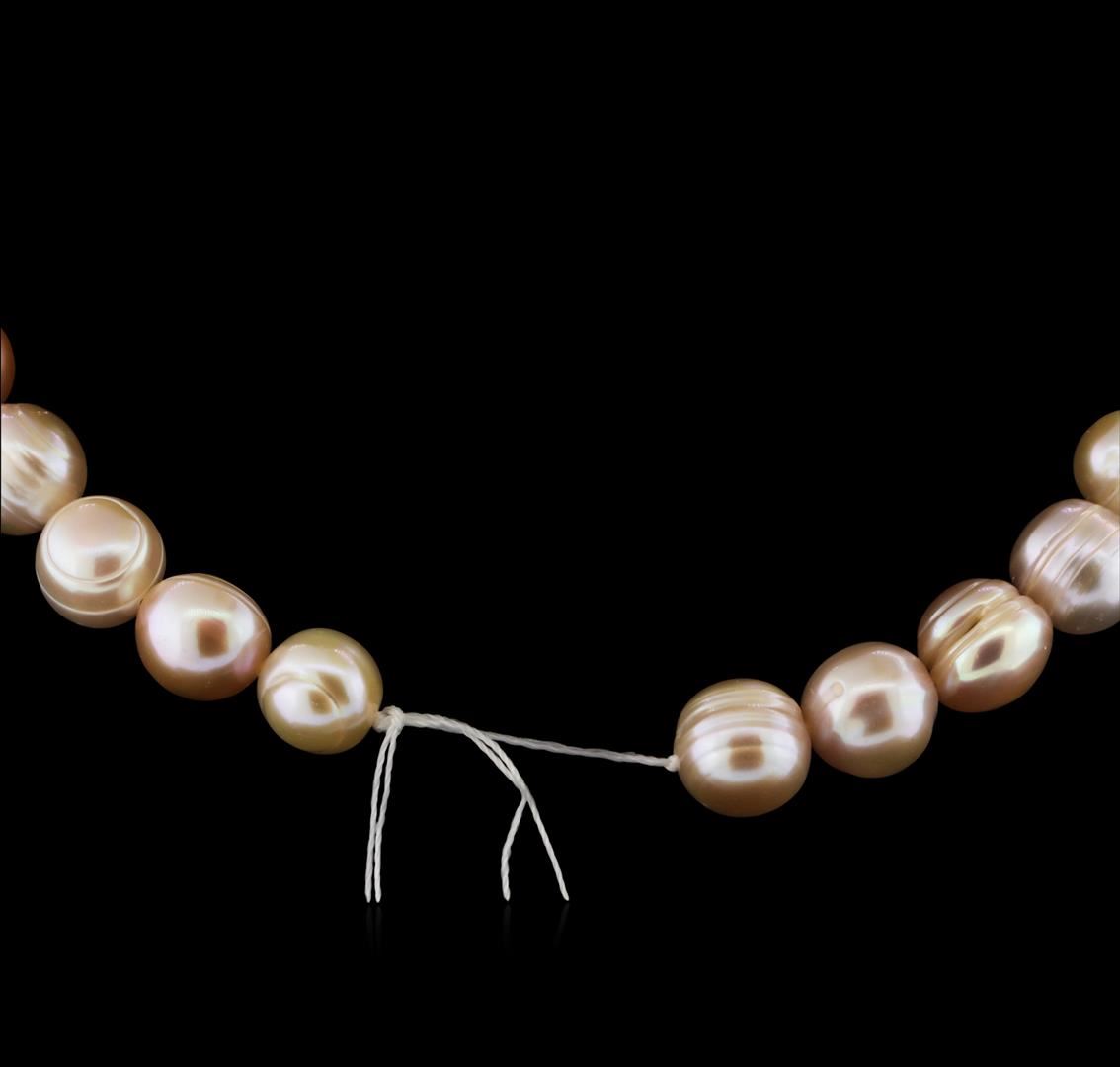 One cultured pearl loose strand/string necklace. The pearls measure approximately 9-10mm. Good condition.