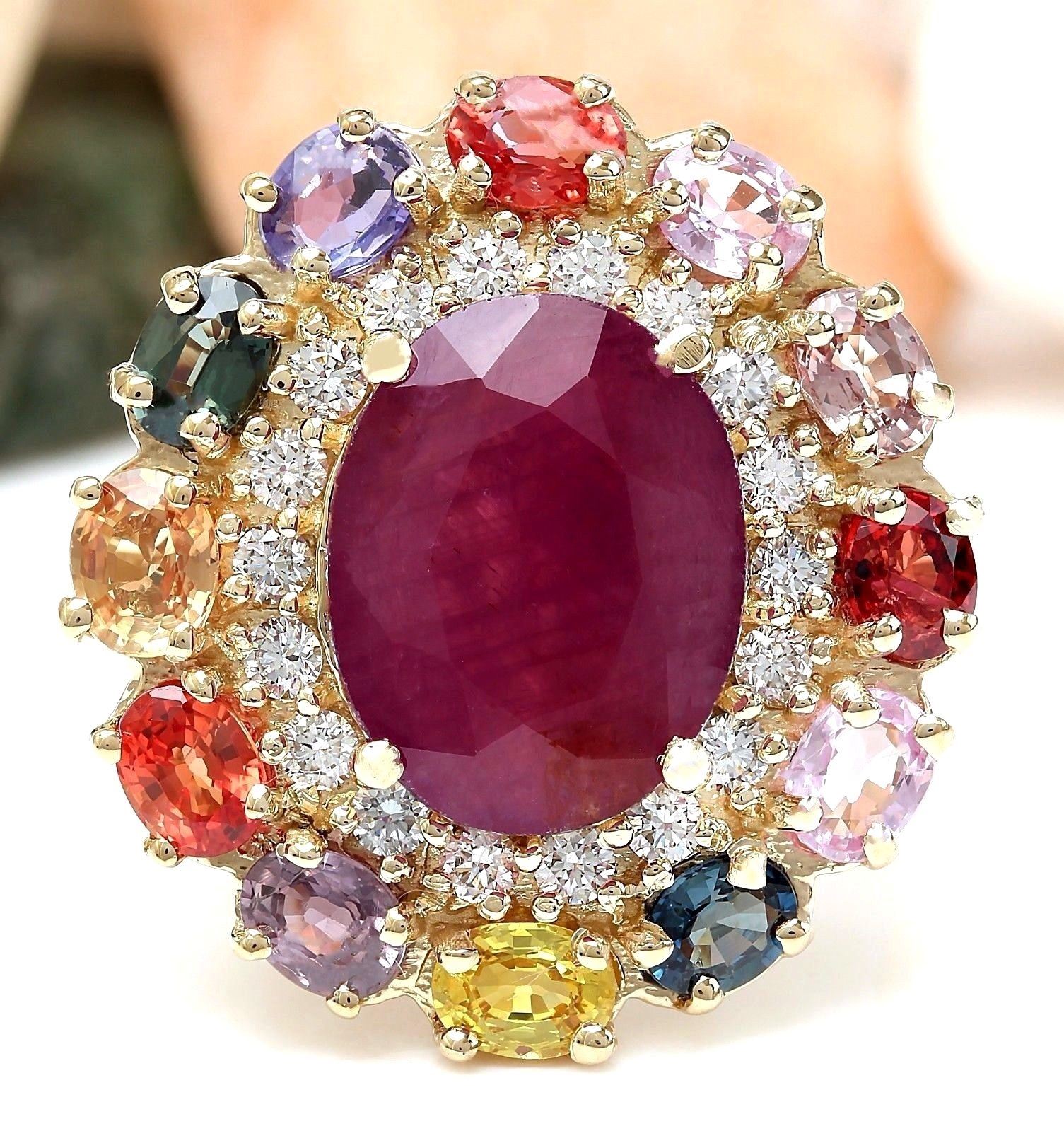 9.11 Carat Natural Ruby, Sapphire 14K Solid Yellow Gold Diamond Ring