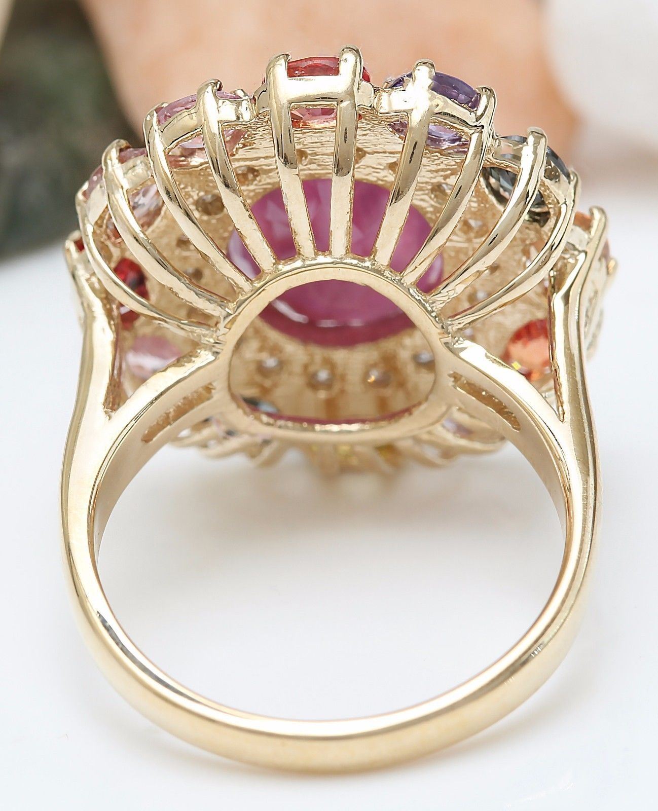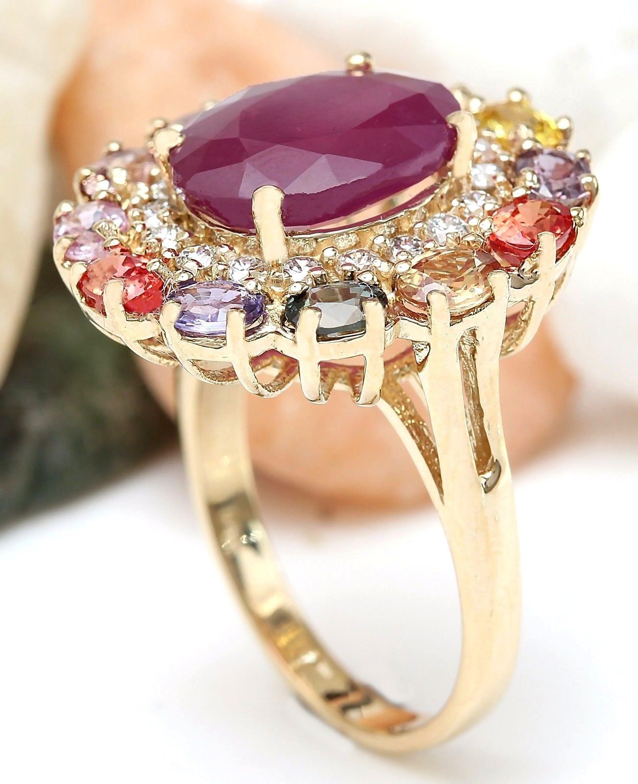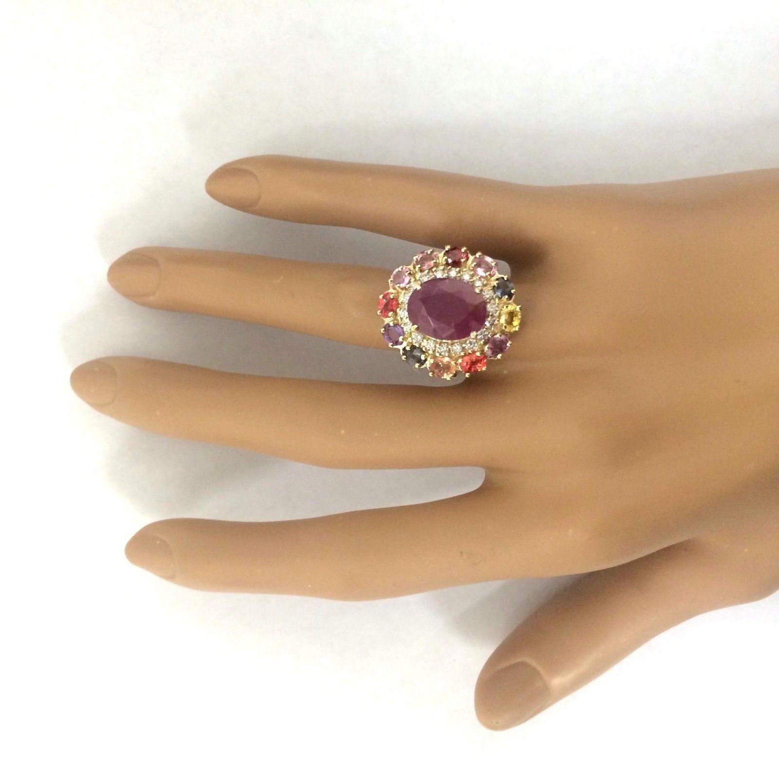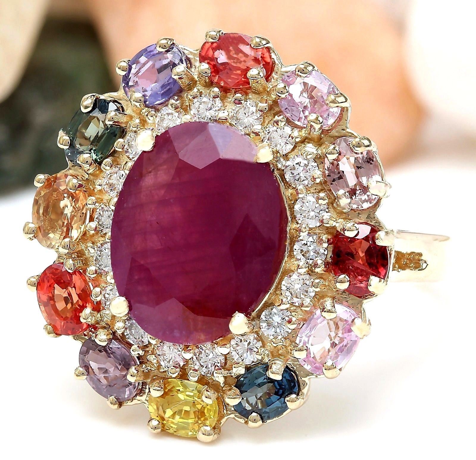 9.11 Carat Natural Ruby, Sapphire 18K Solid Yellow Gold Diamond Ring