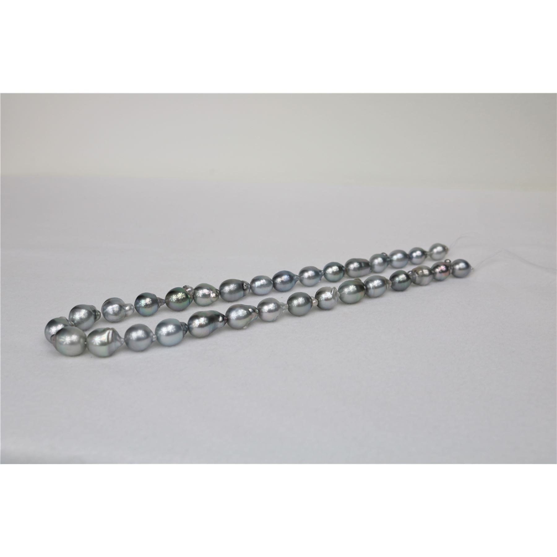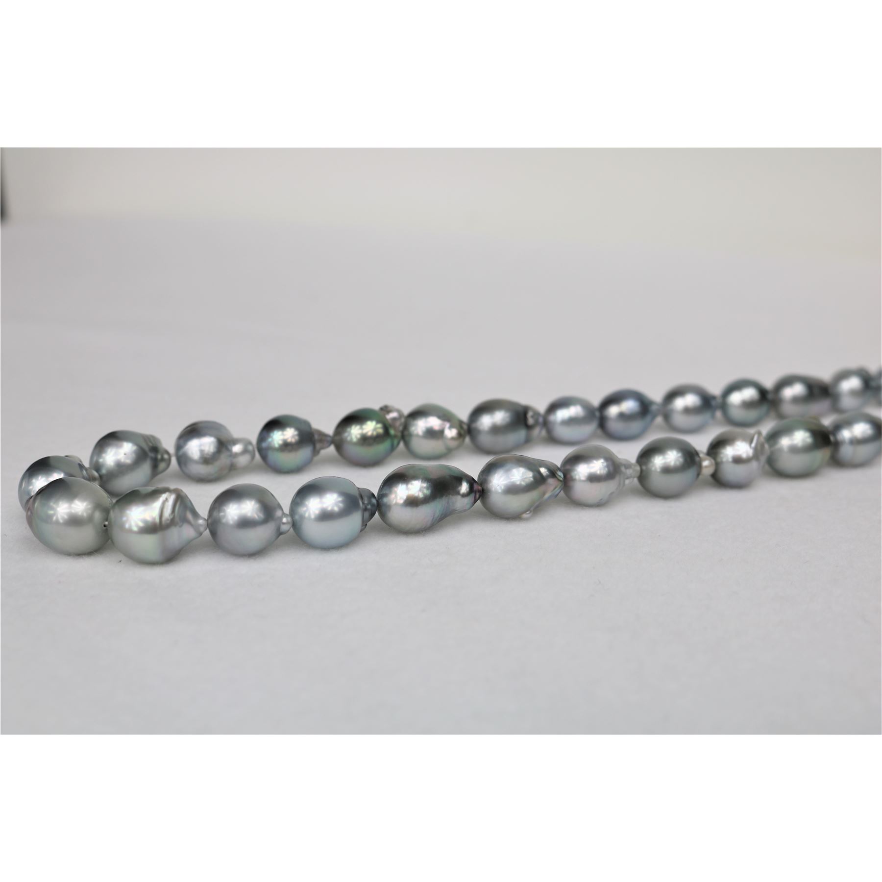9-11mm Tahitian Platinum Silver Unique Baroque Necklace with Gold Clasp