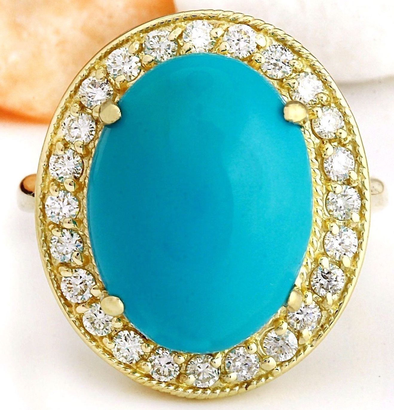 9.12 Carat Natural Turquoise 14K Solid Yellow Gold Diamond Ring