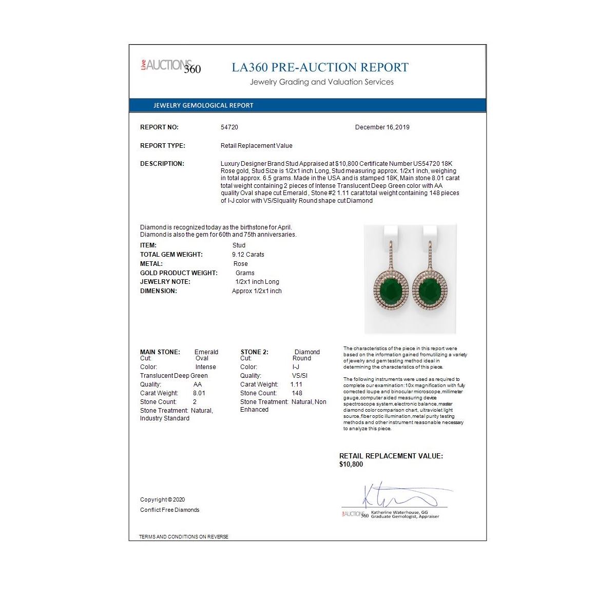 REF-245X5A - SKU: 54720 ---- 9.12 ctw Emerald & Diamond Earrings 18K Rose Gold