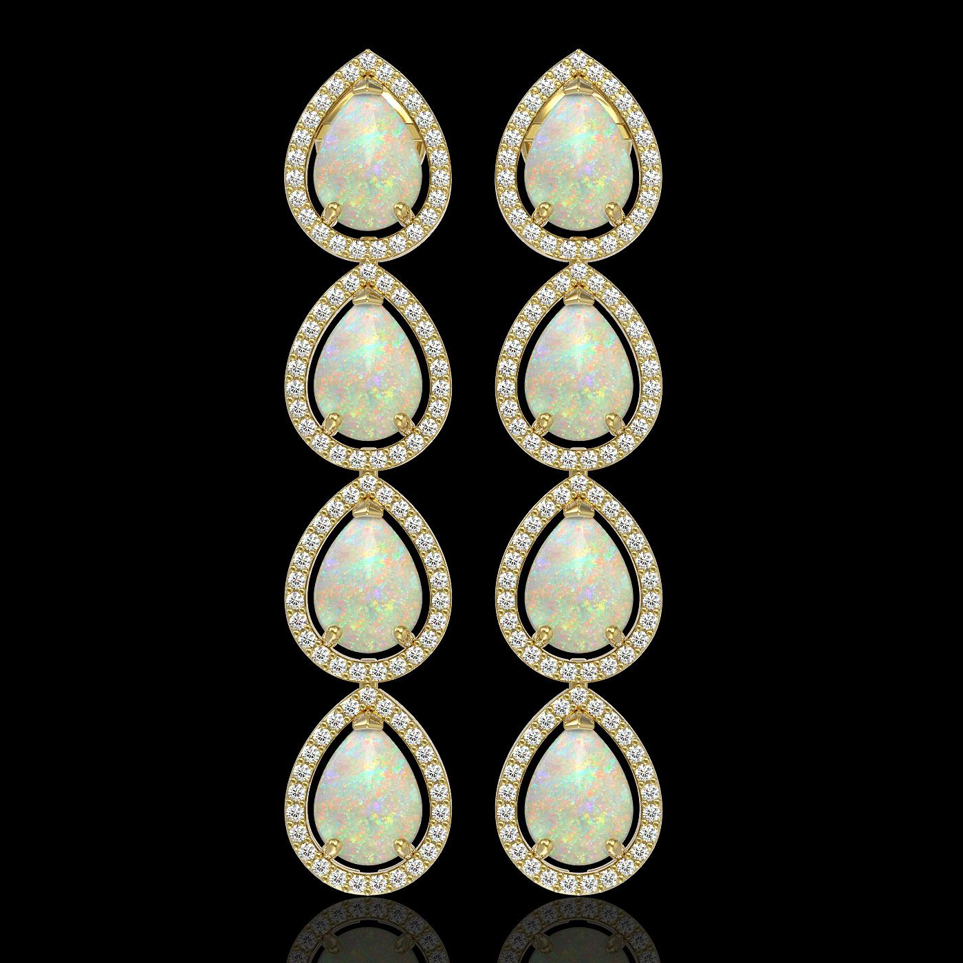 REF-174K5Y - SKU: 41299 ---- 9.12 ctw Opal & Diamond Micro Pave Halo Earrings 10k Yellow Gold