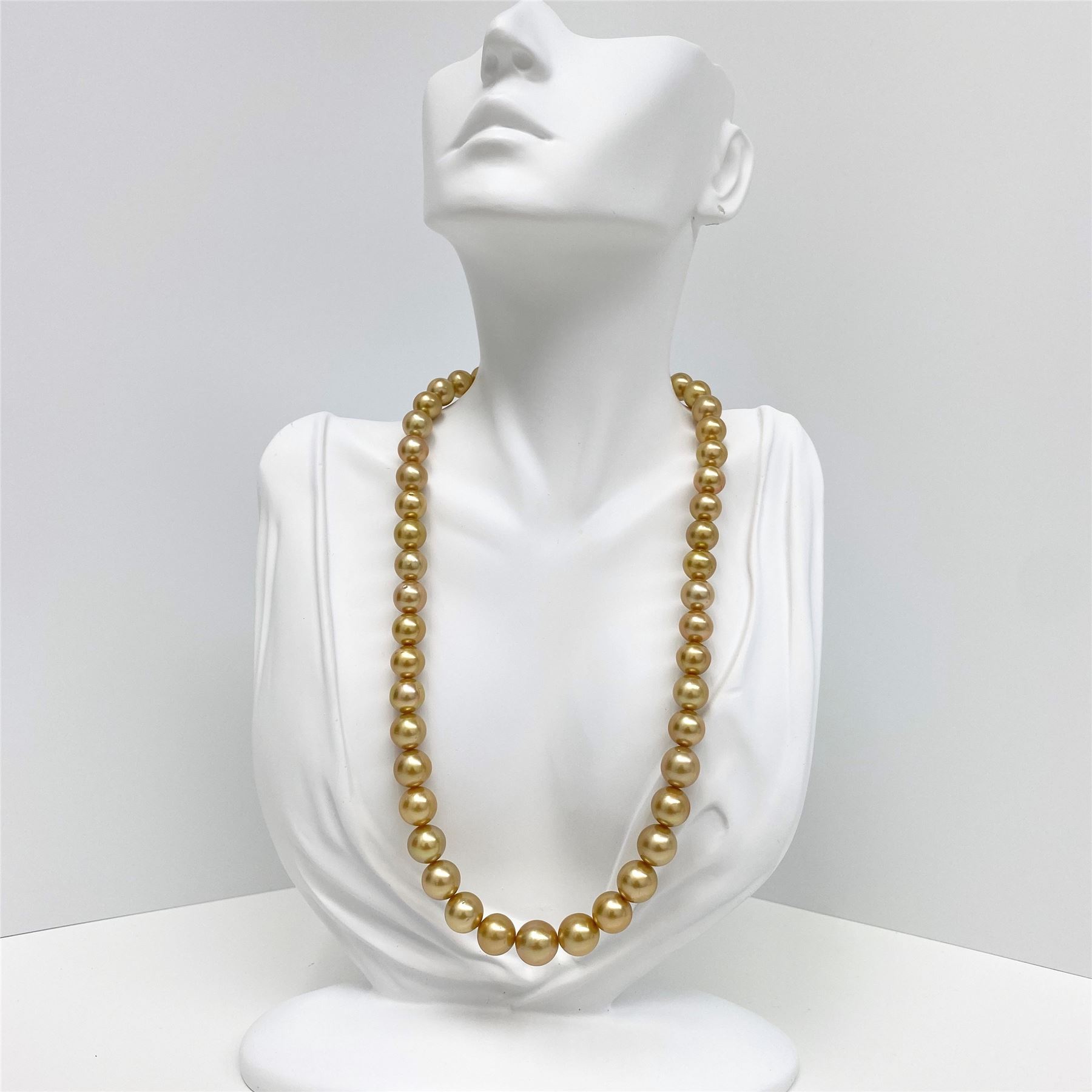 AAA Quality, South Sea Deep Golden Round Pearl Necklace, 18 inches hand-knotted with gold fish-hook clasp #CP66