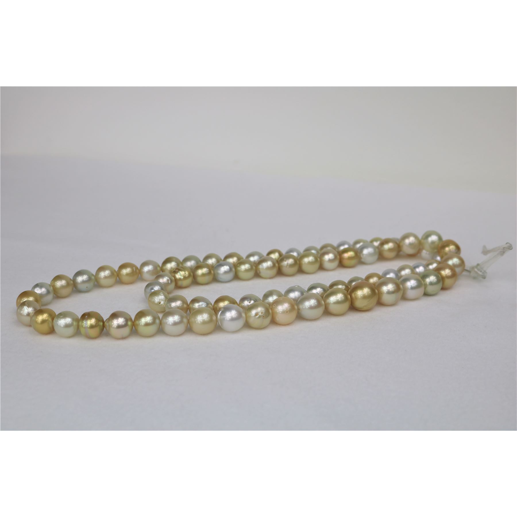 White and Golden South Sea Near Round Multi Color Long Necklace, 33 inches hand knotted with gold fishhook clasp #CP35