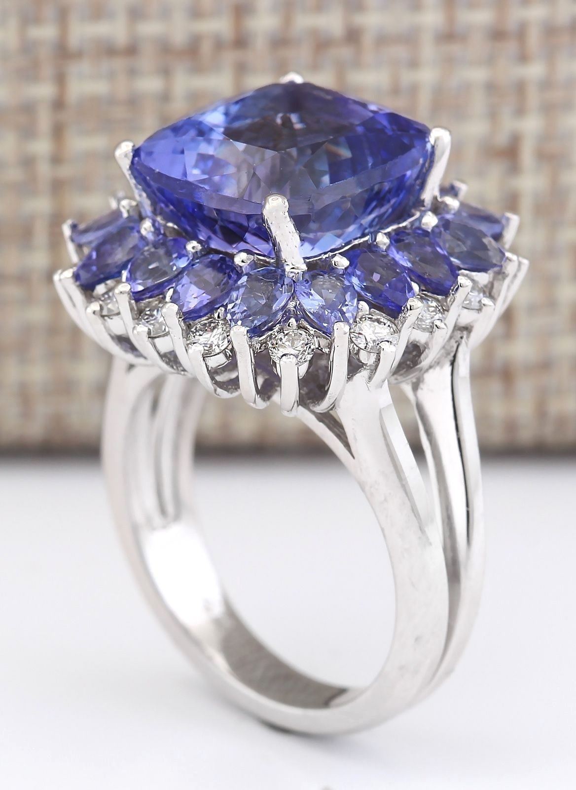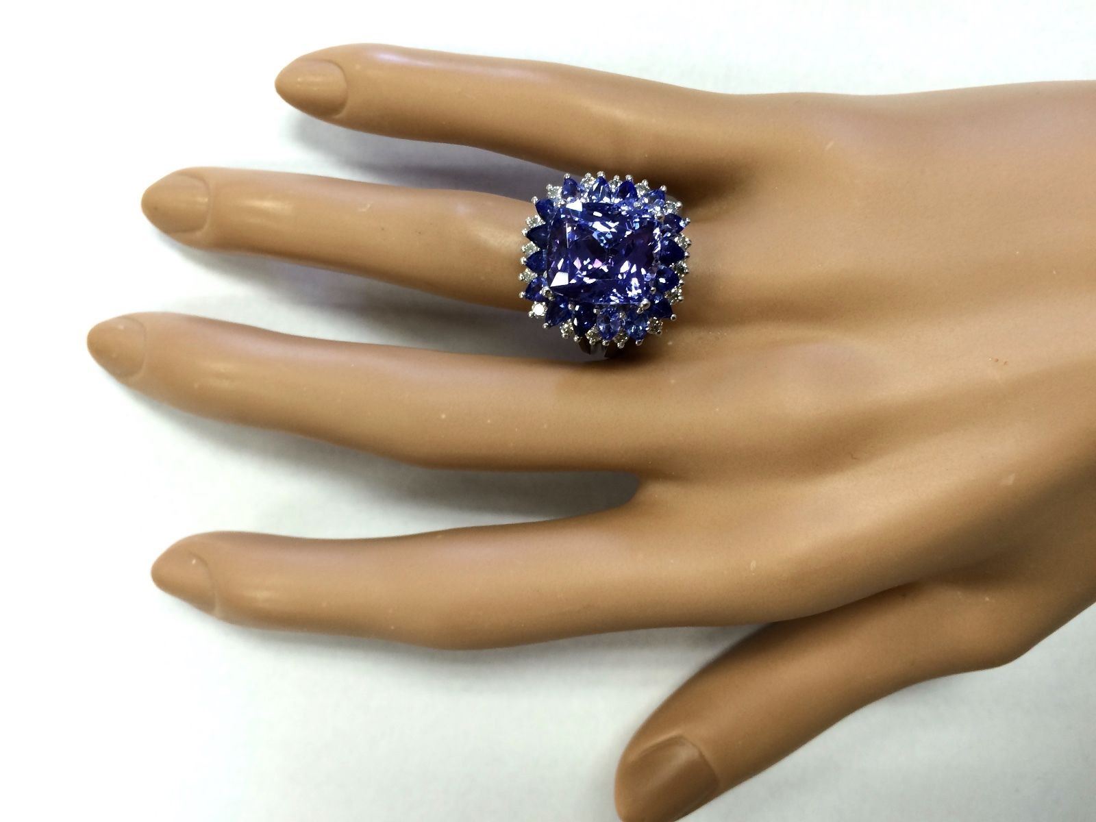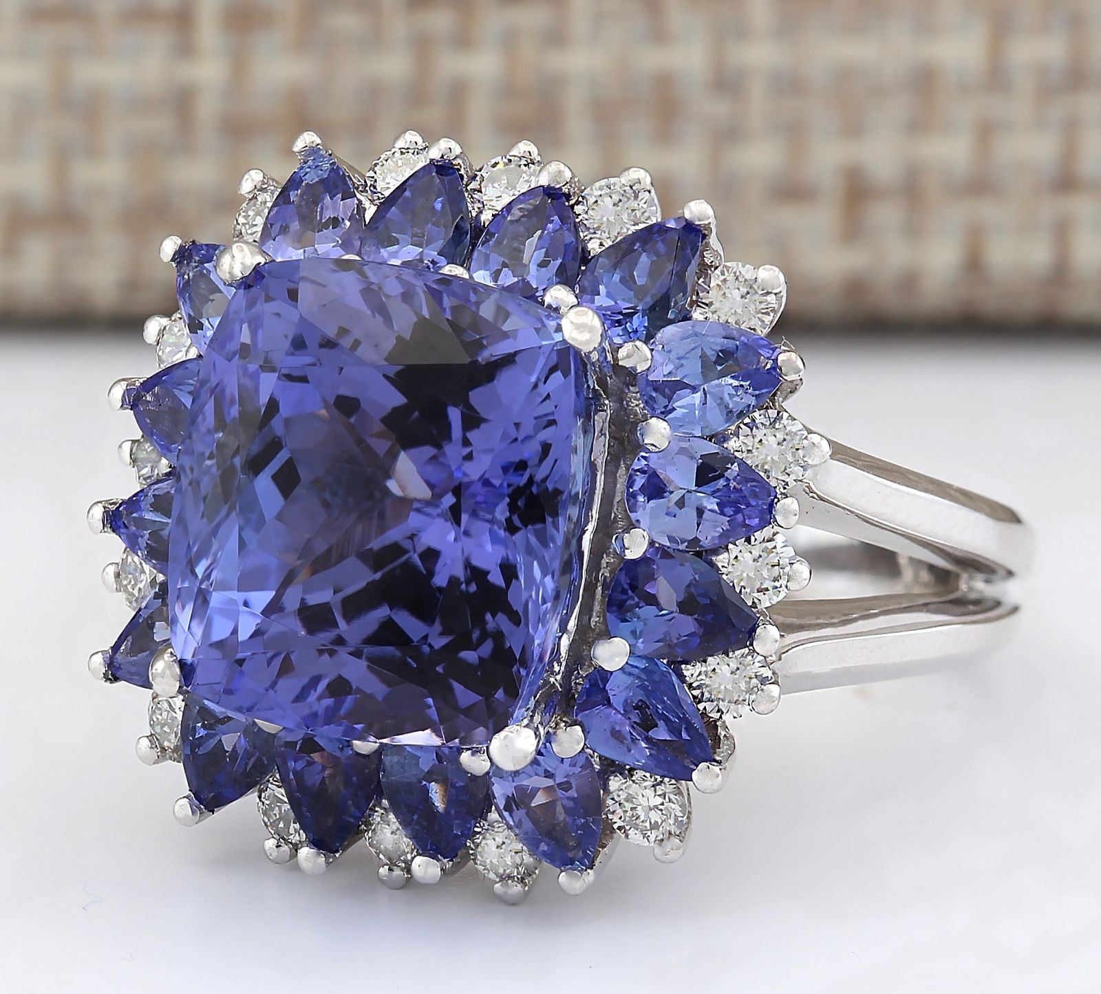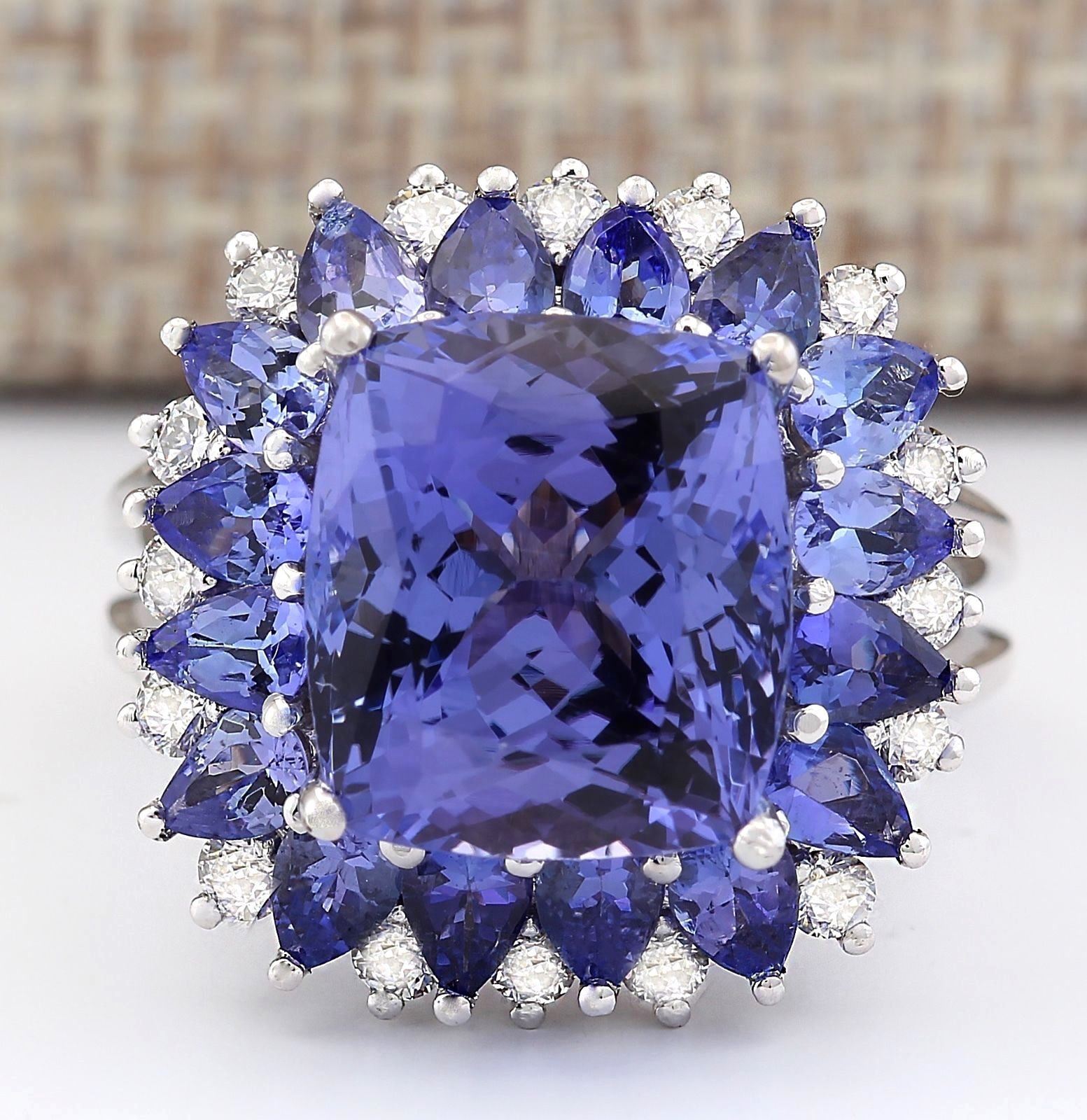 9.14 CTW Natural Blue Tanzanite And Diamond Ring 14k Solid White Gold
