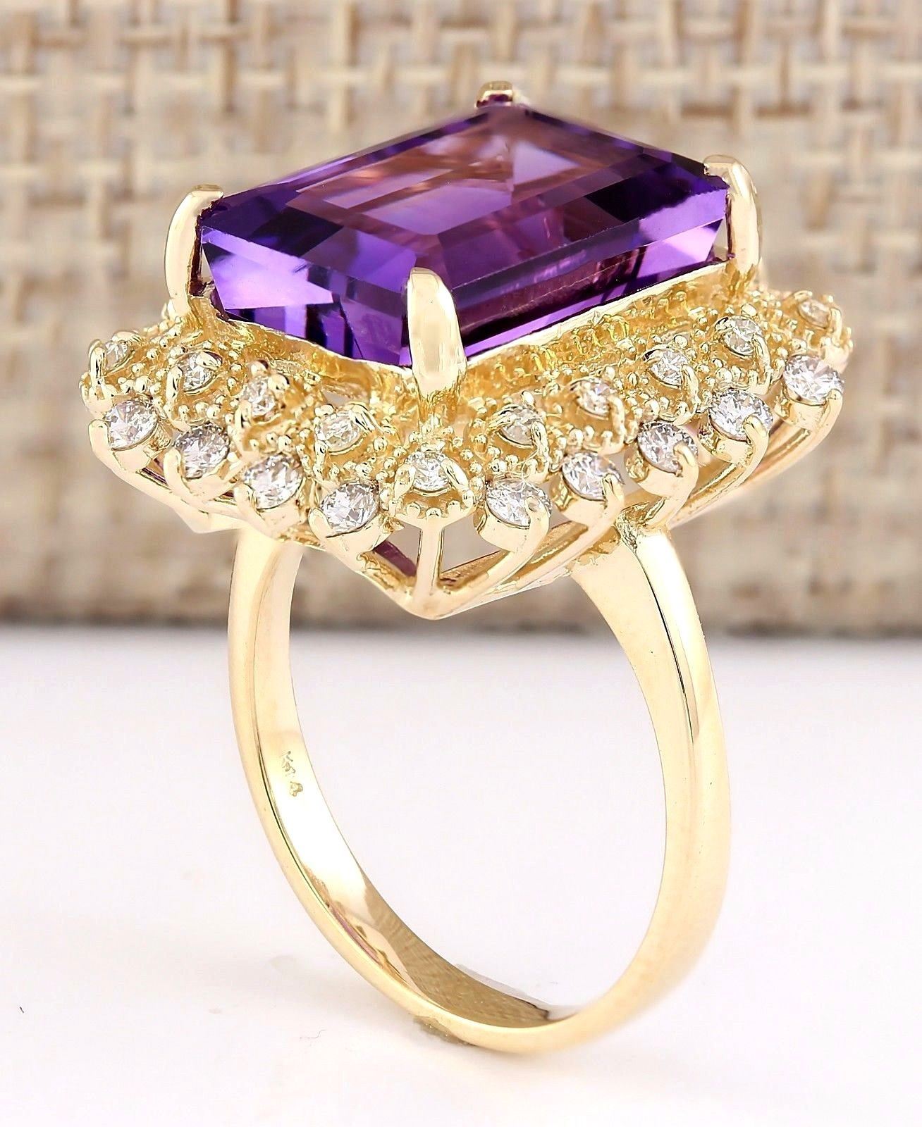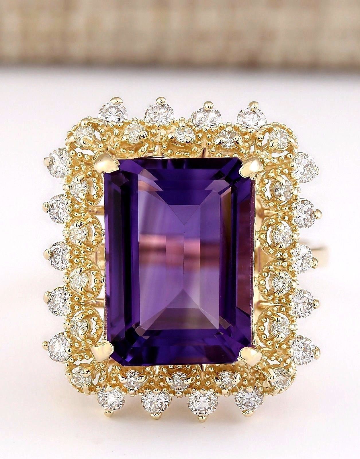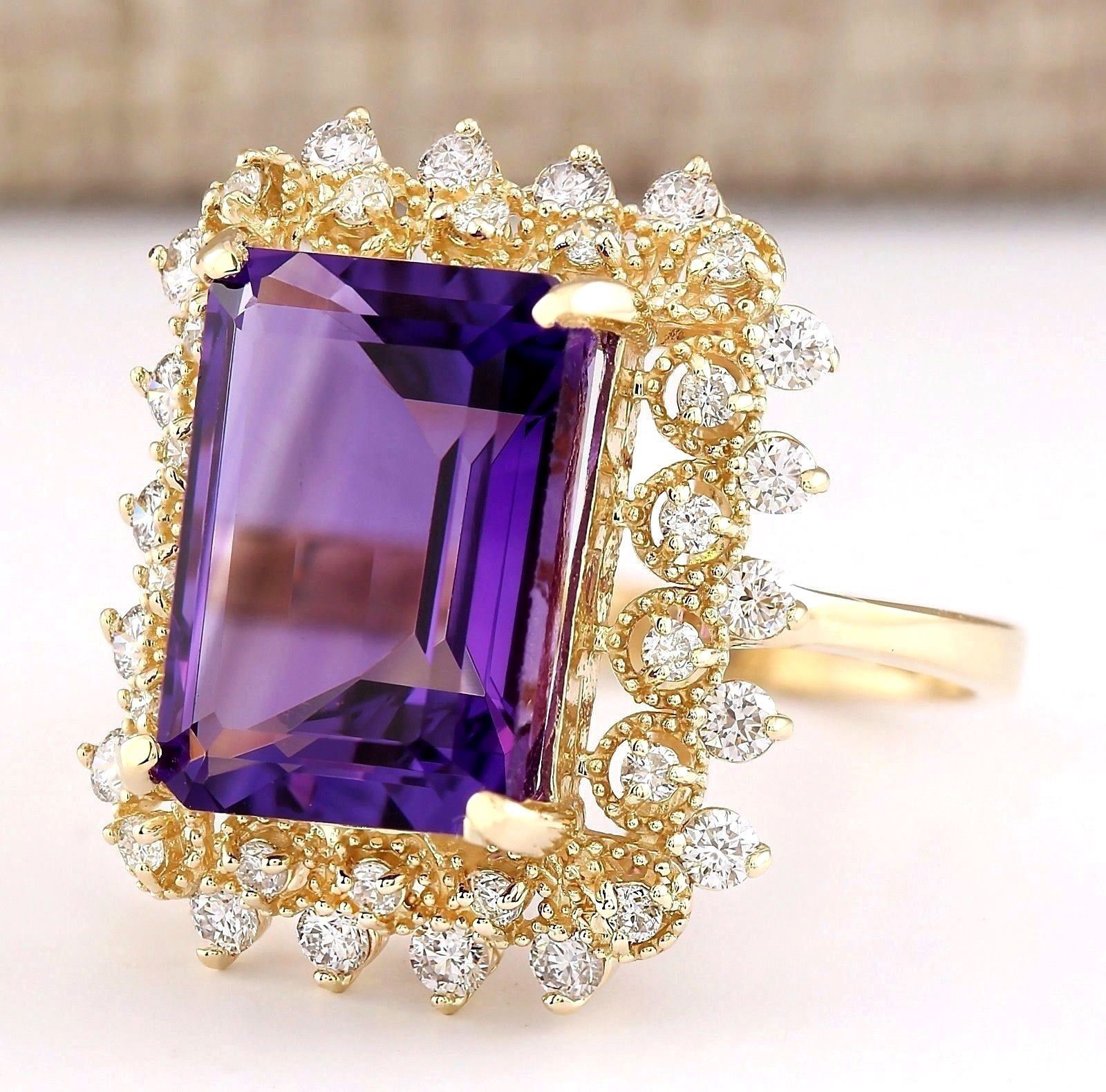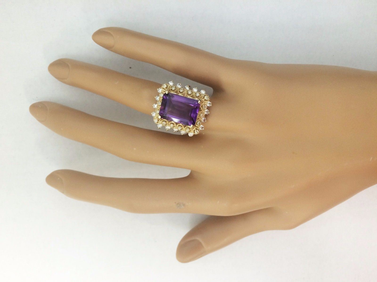 9.15 CTW Natural Amethyst And Diamond Ring In 14k Solid Yellow Gold
