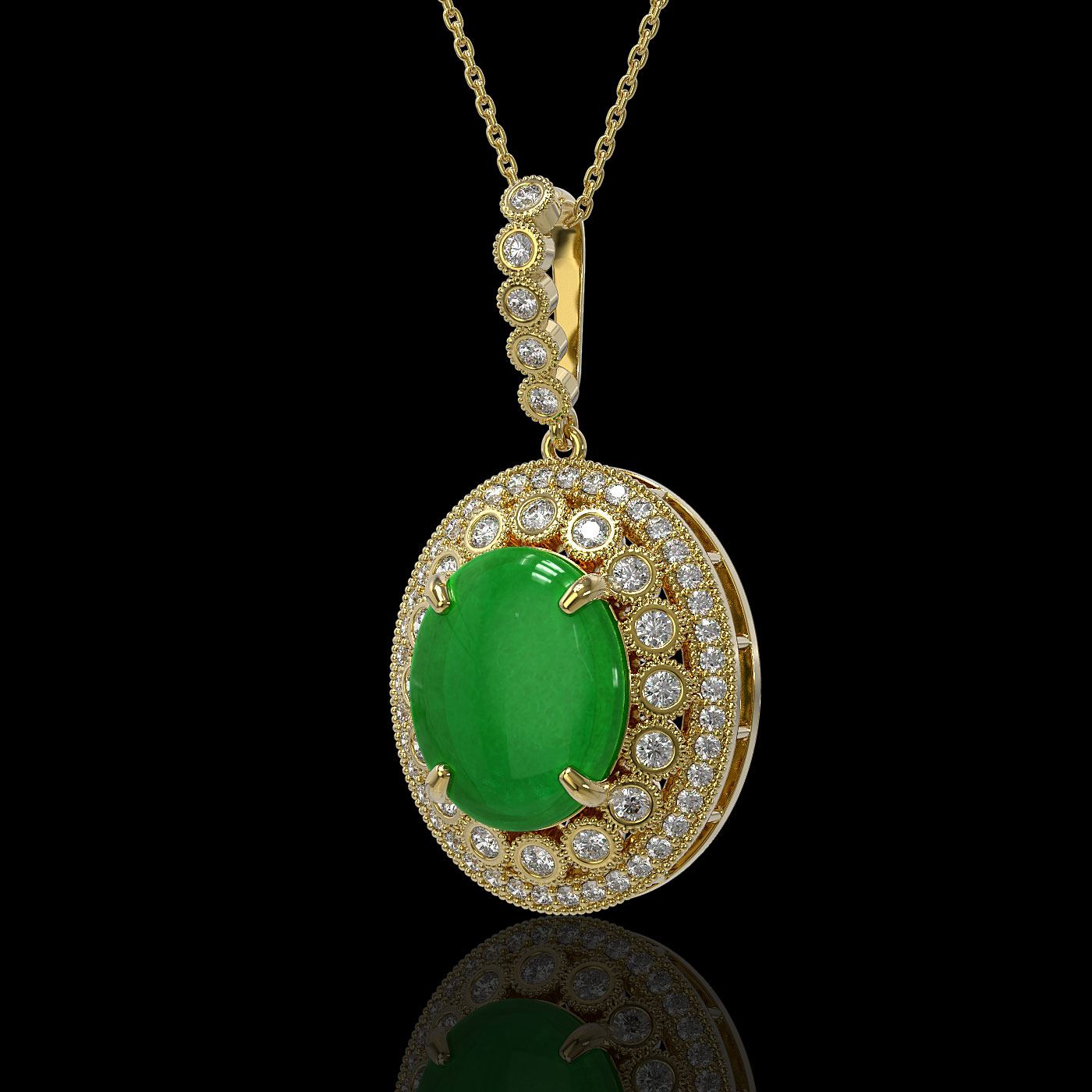 REF-245F5M - SKU: 46139 ---- 9.17 ctw Jade & Diamond Victorian Necklace 14K Yellow Gold