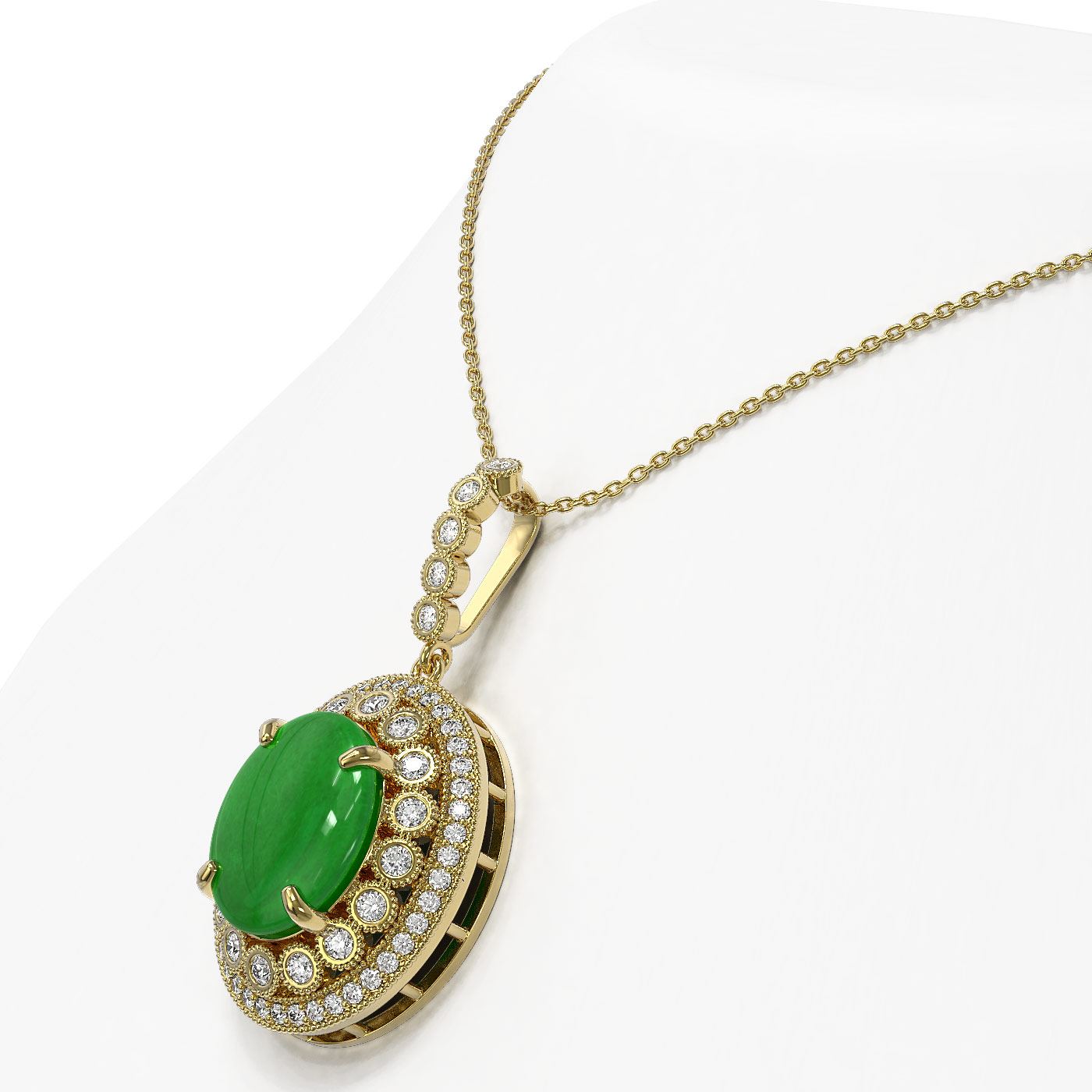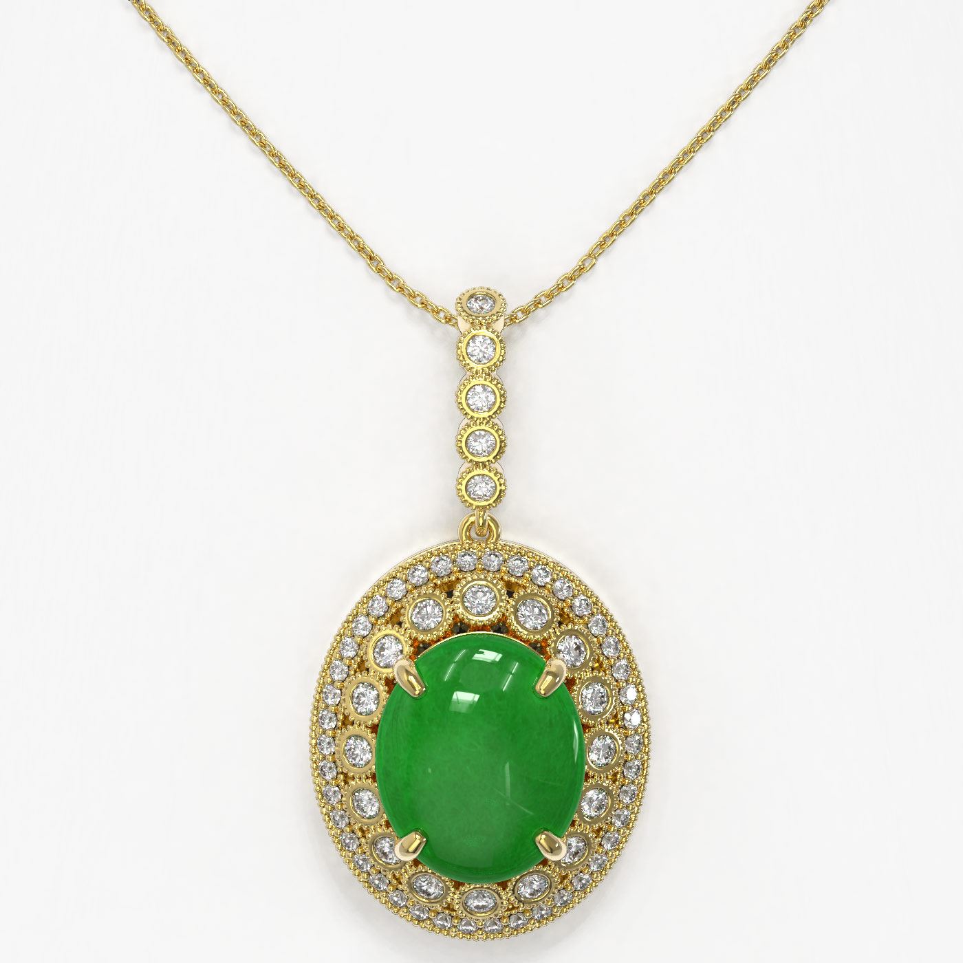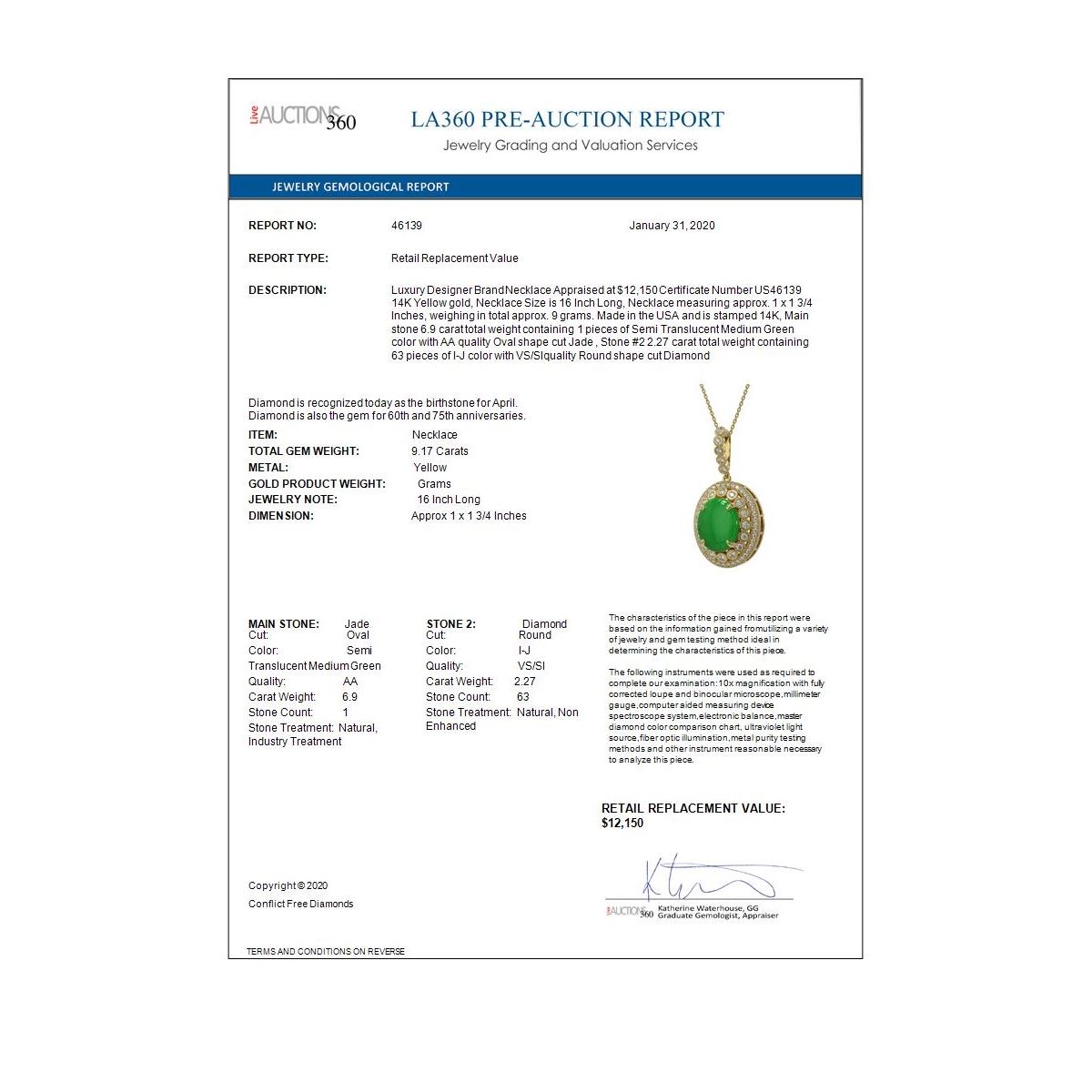 REF-245K5Y - SKU: 46139 ---- 9.17 ctw Jade & Diamond Victorian Necklace 14K Yellow Gold