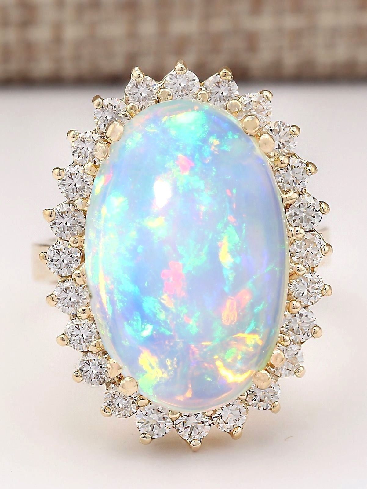 9.18 CTW Natural Opal And Diamond Ring In 14k Yellow Gold
