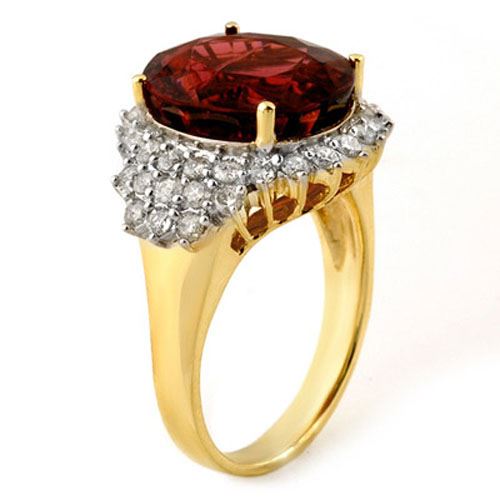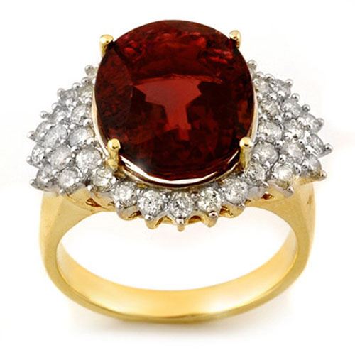 REF-159A8X -10836 ---- 9.18 CTW Pink Tourmaline & Diamond Ring 14K Yellow Gold ---- Luxury Designer Brand Ring Appraised at $12,300 Certificate Number US10836 14k Yellow gold, Ring Size is 6.5, Ring measuring approx. 5/8" x 3/4" , weighing in total approx. 7 grams. Made in the USA and is stamped 14k, Main stone 8 carat total weight containing 1 pieces of Intense Reddish Pink color with AAA quality Oval shape cut Tourmaline , Stone #2 1.18 carat total weight containing 44 pieces of H-I color with VS/SI quality Round shape cut Diamond