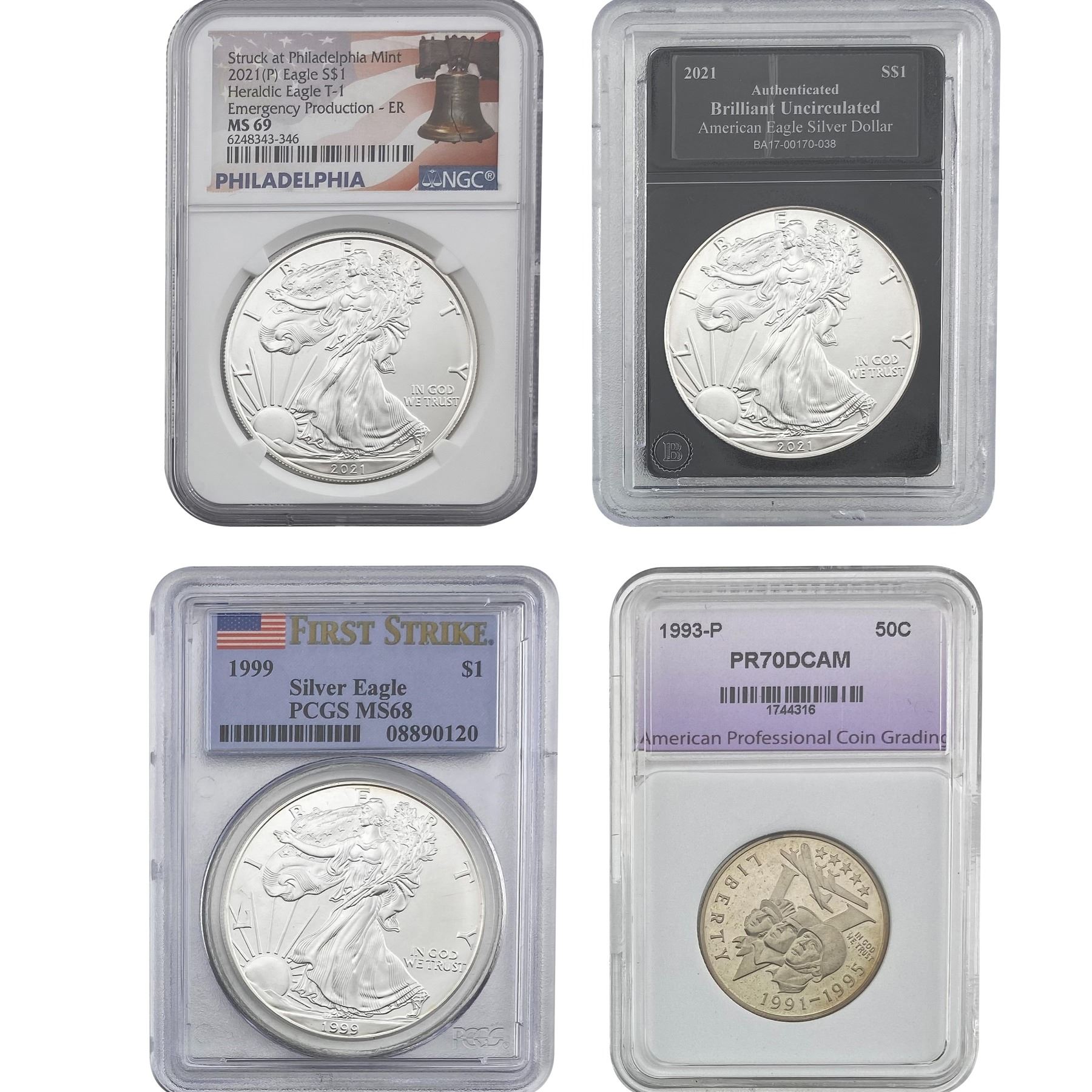 j. Although consensus grading is employed by most grading services, it should be noted as aforesaid that grading is not an exact science. In fact, it is entirely possible that if a Product is broken out of a plastic holder and resubmitted to another grading service or even to the same service, the Product could come back with a different grade assigned.