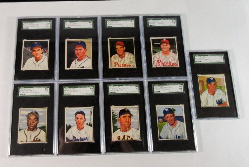 9 - 1950 BOWMAN SGC GRADED CARDS, #52 VG3, #108 FAIR 1.5, #203 VG3, #224 VG3,