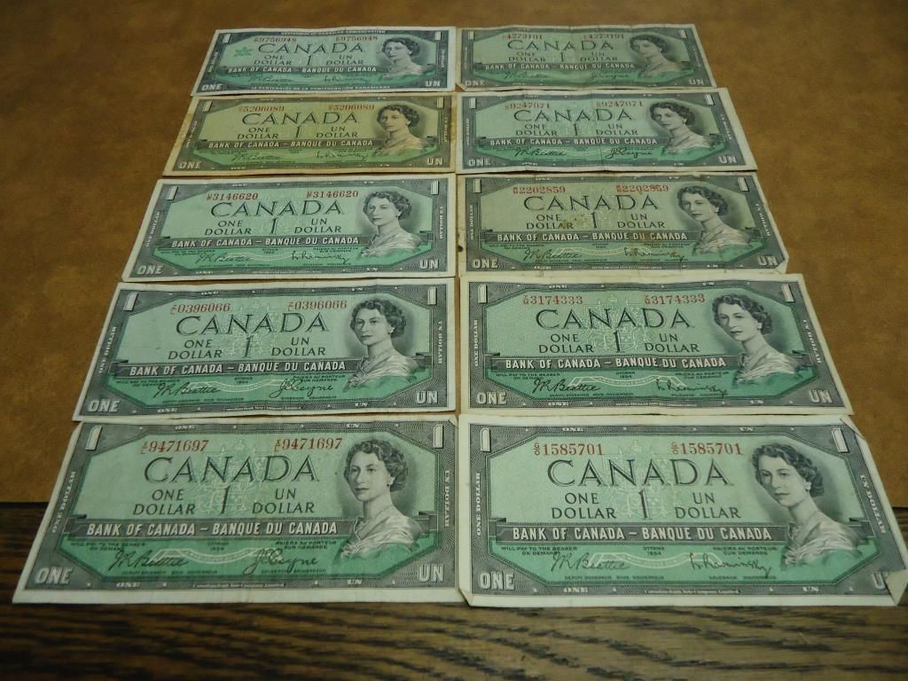9-1954 & 1-1967 CANADA ONE DOLLAR BILLS