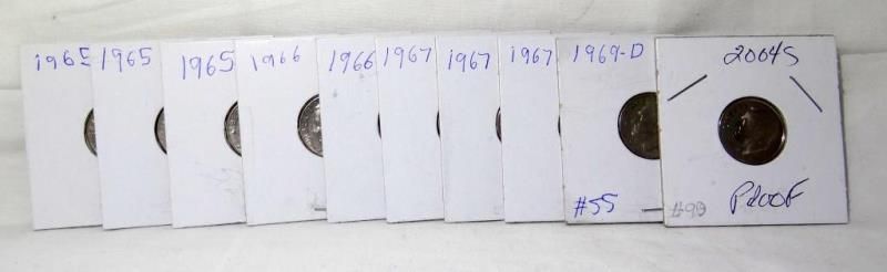(9) 1960's Roosevelt Dimes UNCIRCULATED+2004 Proof
