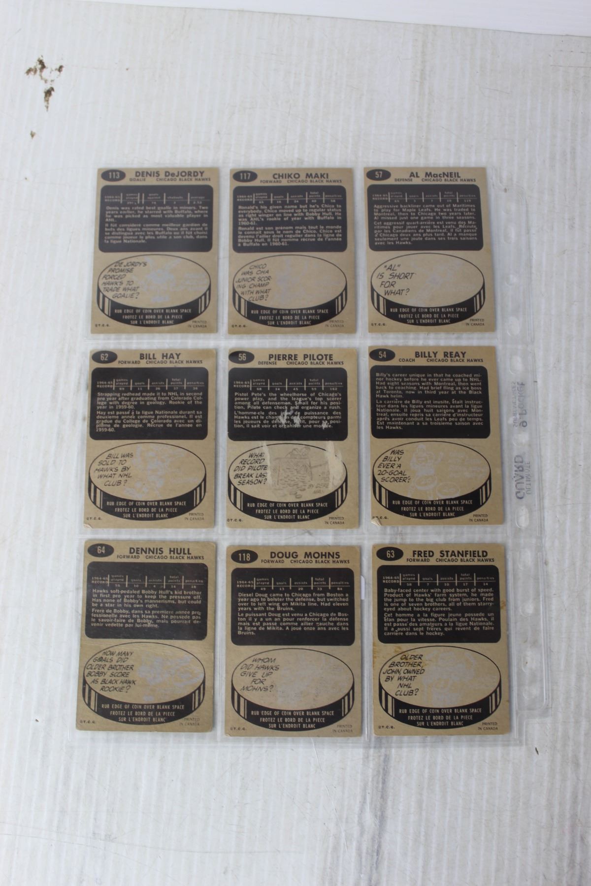 (9) 1965-66 Topps NHL Trading Cards - Chicago Blackhawks