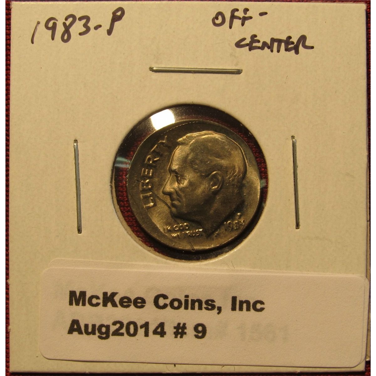 9. 1983-P Roosevelt Dime, Off-center Strike Error