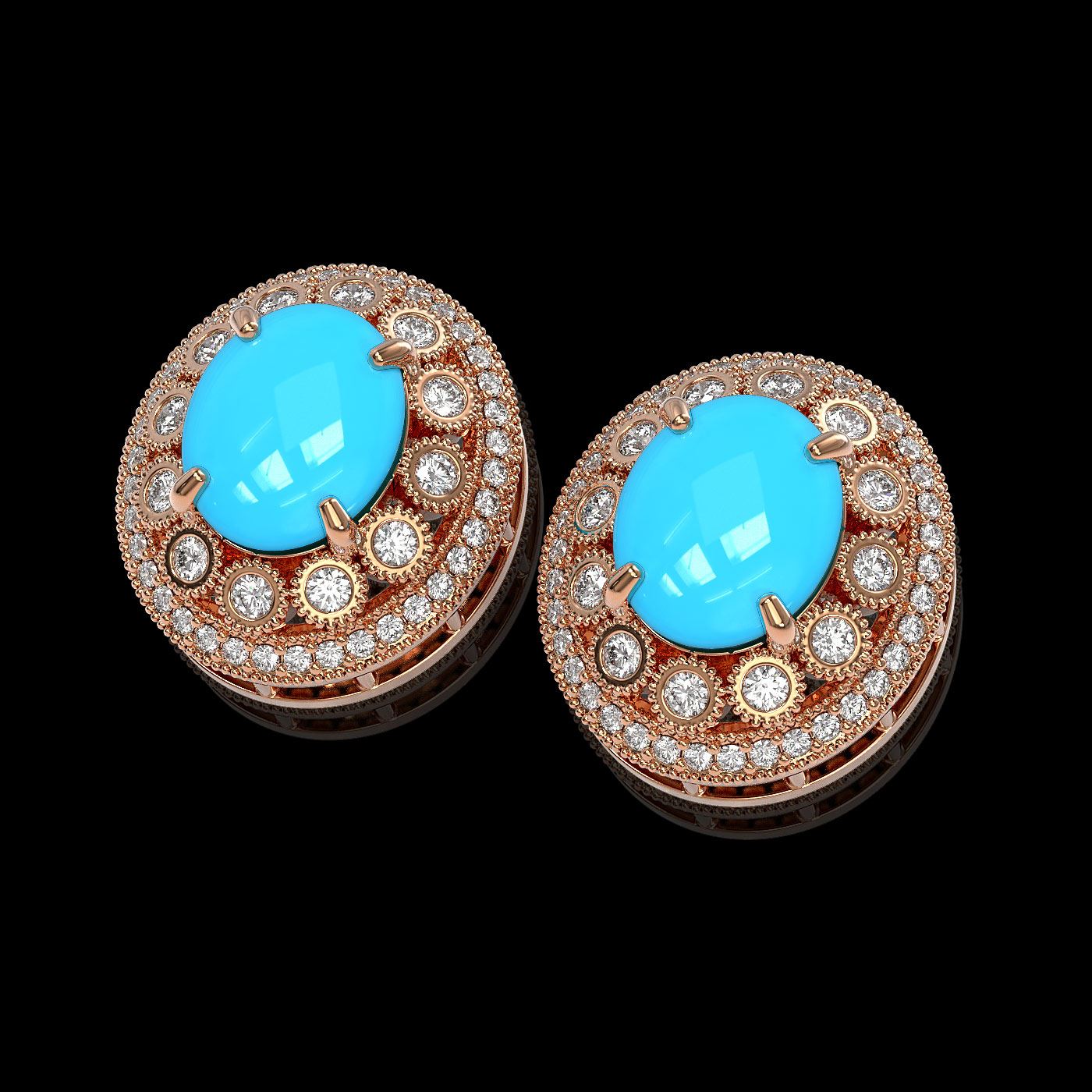 9.21 ctw Turquoise & Diamond Earrings 14K Rose Gold