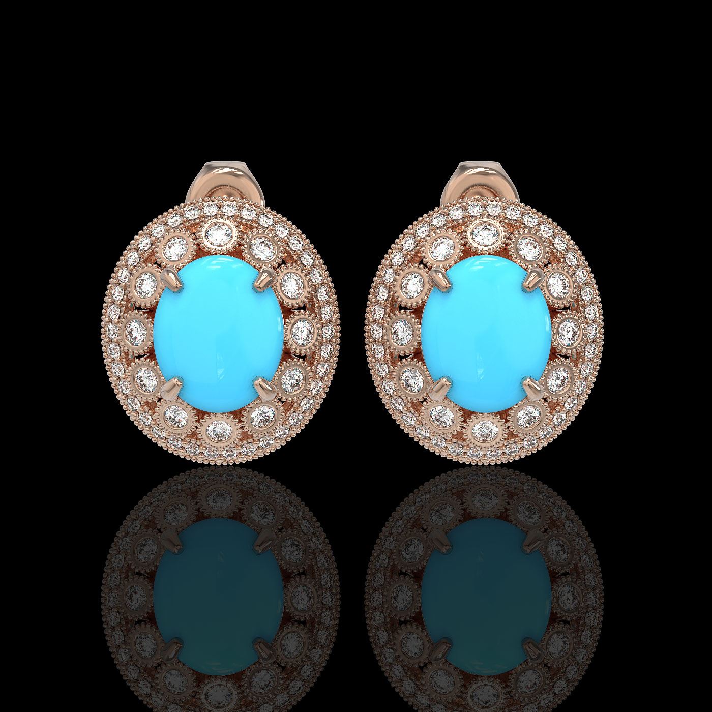REF-266Y4X - SKU: 46105 ---- 9.21 ctw Turquoise & Diamond Victorian Earrings 14K Rose Gold