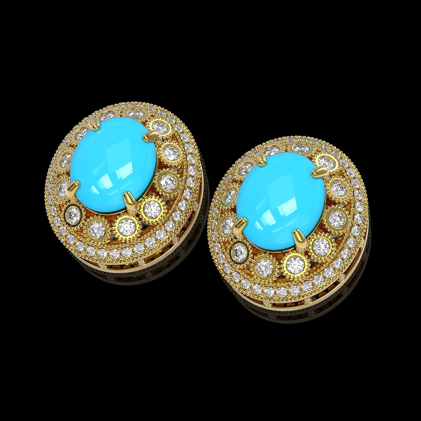 REF-266A4N - SKU: 46106 ---- 9.21 ctw Turquoise & Diamond Victorian Earrings 14K Yellow Gold