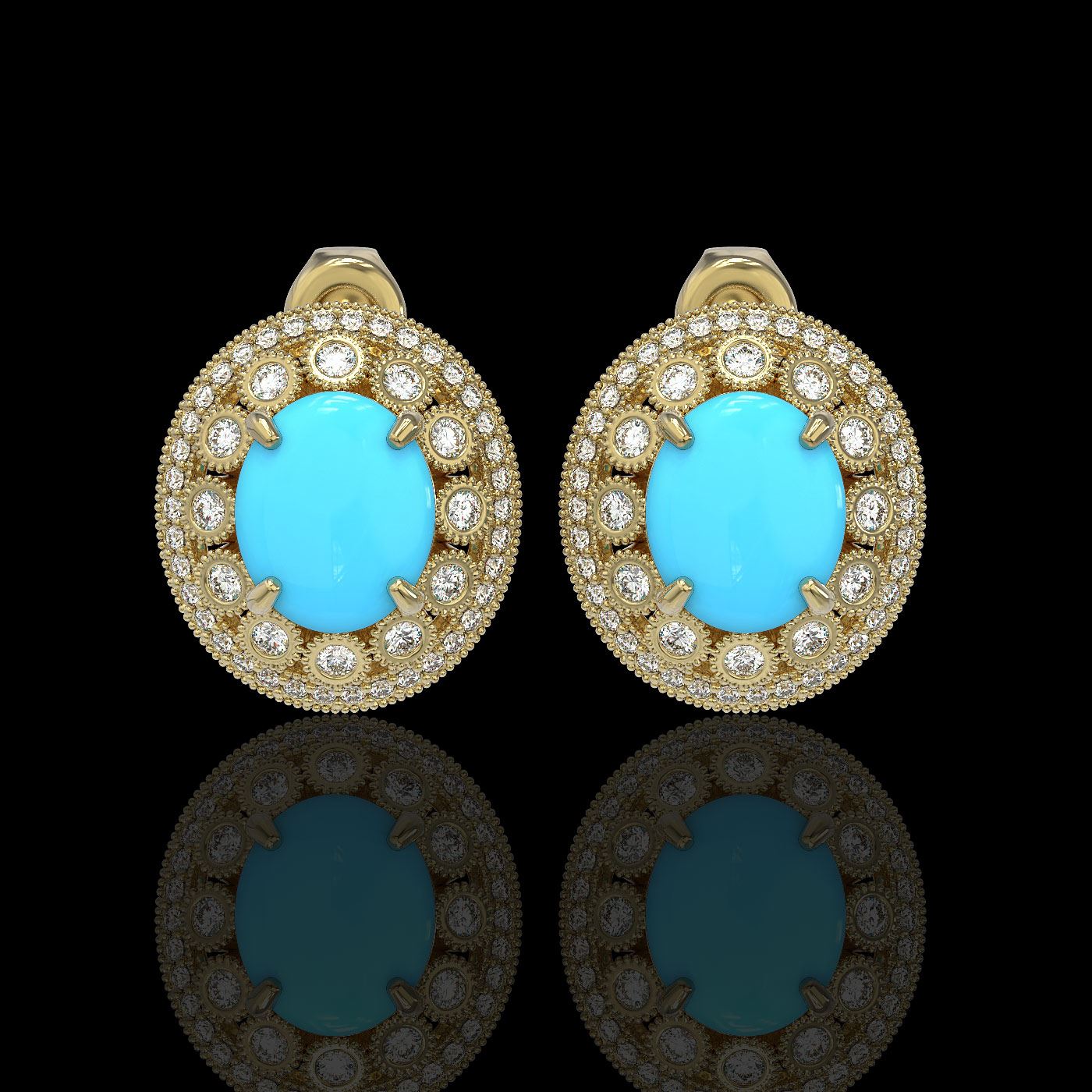 REF-266A4N - SKU: 46106 ---- 9.21 ctw Turquoise & Diamond Victorian Earrings 14K Yellow Gold