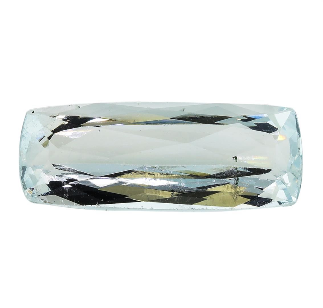 One natural cushion cut aquamarine with an exact weight of 9.23ct., clarity is eye clean, slightly grayish greenish blue, light. Gemological Appraisals Services estimates the retail value at $3553.55 GAS Appraised.