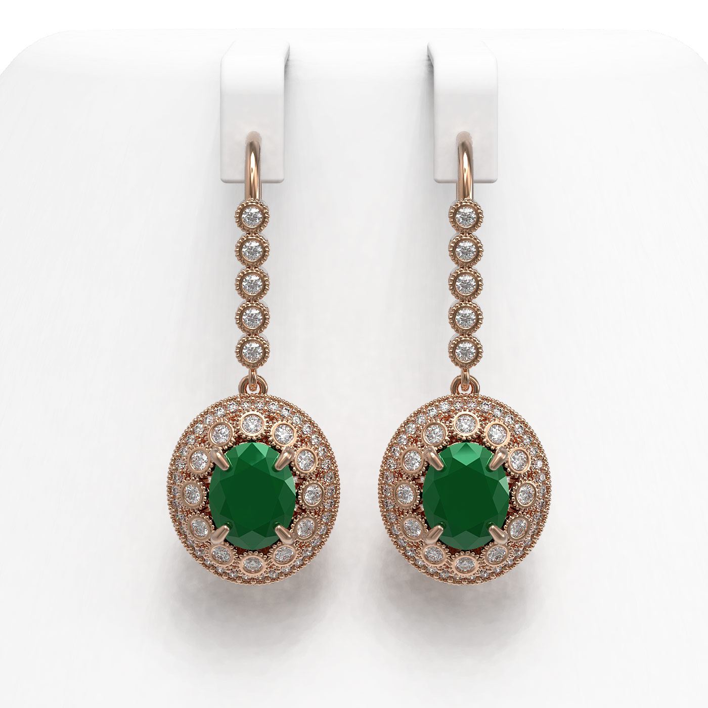 REF-256A2N - SKU: 43602 ---- 9.25 ctw Certified Emerald & Diamond Victorian Earrings 14K Rose Gold