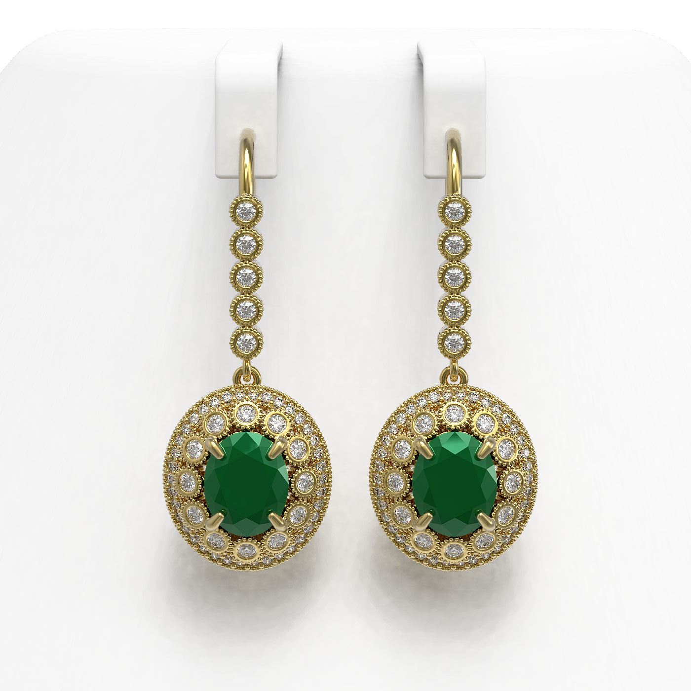 REF-256F2M - SKU: 43603 ---- 9.25 ctw Certified Emerald & Diamond Victorian Earrings 14K Yellow Gold