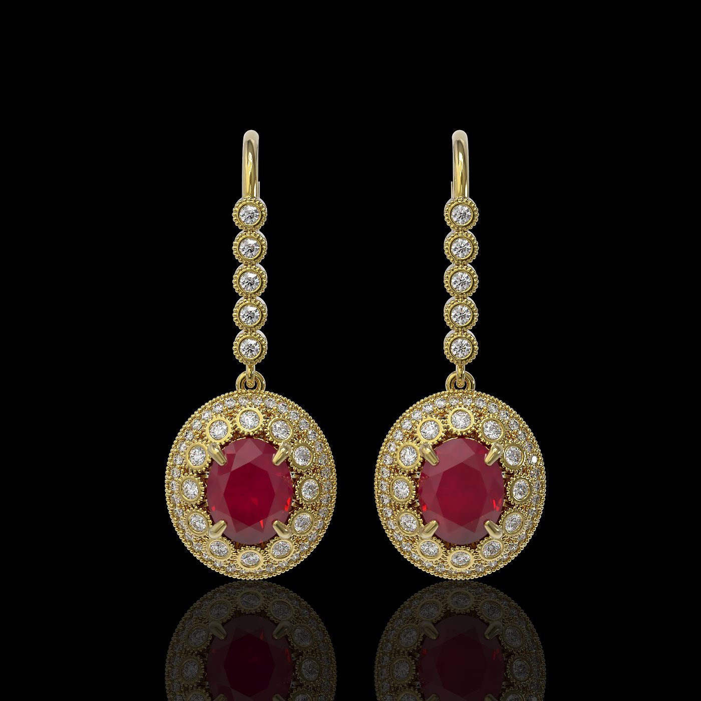REF-249H6R - SKU: 43606 ---- 9.25 ctw Certified Ruby & Diamond Victorian Earrings 14K Yellow Gold
