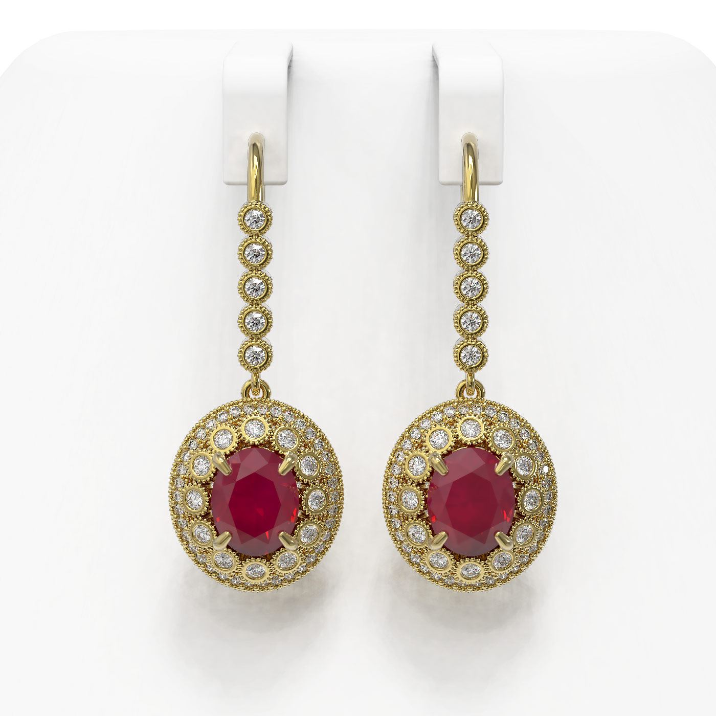 SKU: 43606 ---- 9.25 ctw Certified Ruby & Diamond Victorian Earrings 14K Yellow Gold