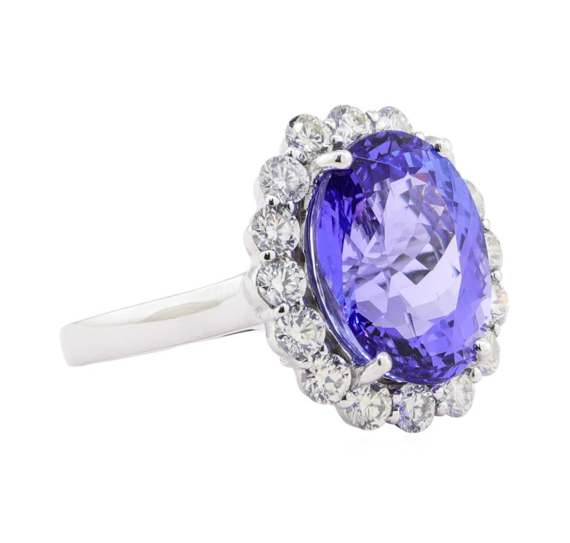 One electronically tested platinum ladies cast tanzanite & diamond ring. The featured tanzanite is set within a diamond floret, supported by a ribbed under gallery, completed by a two millimeter wide band. Bright polish finish. Trademark is Orianne. Identified with markings of "PT950". Condition is new, good workmanship. Containing: One prong set oval modified brilliant cut natural tanzanite, measuring 14.37 x 11.26 x 8.20mm, exact weight 9.25ct., clarity is eye clean, type I, medium, very slightly grayish, violet color, (GIA V 5/3), cut is good. Transmitting light with no distortion, transparent. GIA Gemological Report attached. Graded loose prior to setting in the GIA Laboratory, Report #117570525.Tanzanite is a very rare gemstone that is only found in the country of Tanzania. Originally discovered in 1967. Tiffany & Company, named the stone Tanzanite. It is found in the Usumburu Mountains that border the Umba Valley of northern Tanzania. Tanzanite occurs in gray, brown, violet, blue, reddish-purple, & green. The gem is interesting because of its exceptional pleochroism. Rotated in different directions a tanzanite will exhibit multiple changes of color. Tanzanite has a low tolerance to ultrasonic cleaning, and should not be cleaned using this method. Sixteen prong set round brilliant cut diamonds, measuring 2.80 - 2.80 x 1.68mm (depth est.) exact total weight 16 Stones = 1.47ct. Graded in the setting. Clarity SI-2 Color G - I Total Weight of Colored Stones 9.25 ct. Total Weight of Diamonds 1.47 ct. Total Weight of Ring 10.10 gm Estimated Retail Value $ 26,800.00 US