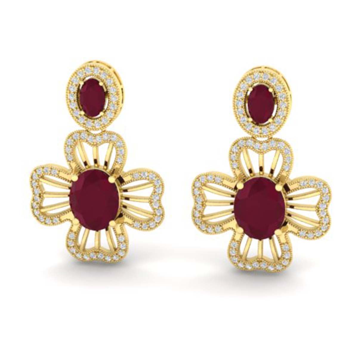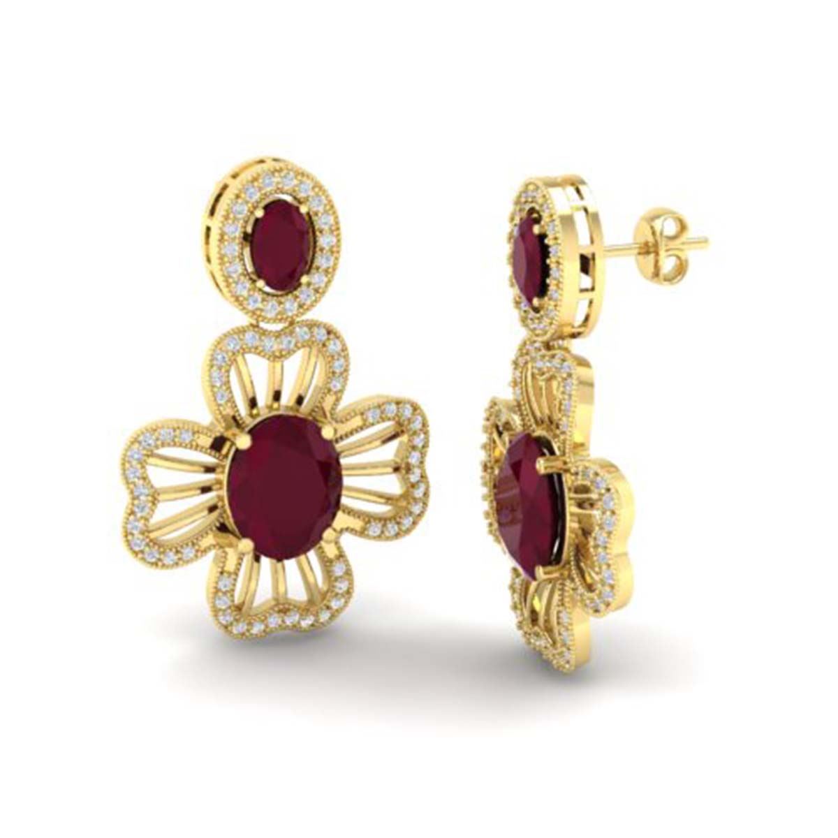 REF-156V2Y - SKU:21130 ---- 9.26 ctw Ruby & VS/SI Diamond Earrings 14K Yellow Gold