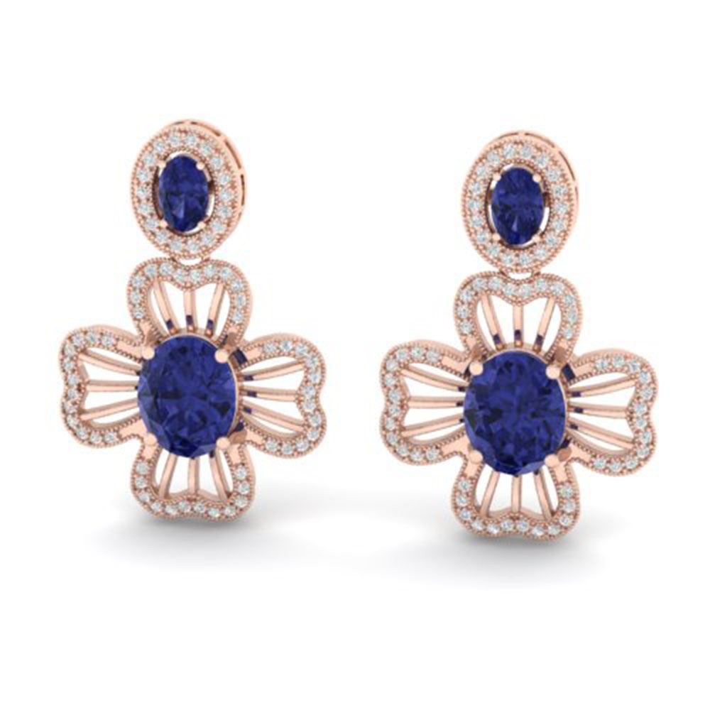 SKU: 21133 ---- 9.26 ctw Tanzanite & Micro Pave VS/SI Diamond Earrings 14k Rose Gold