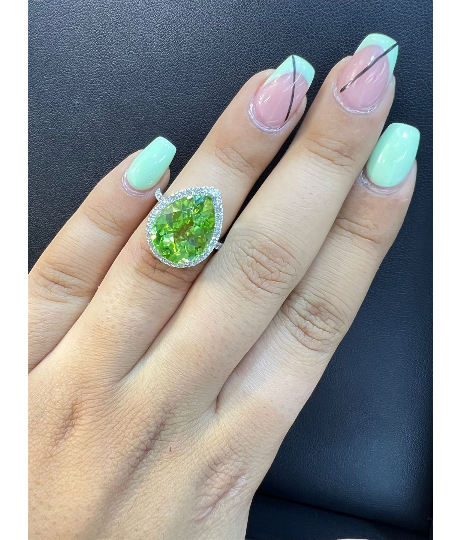 14K White Gold Ring 4.92gm / 9.26ct Natural Peridot / Diamonds 0.71ct