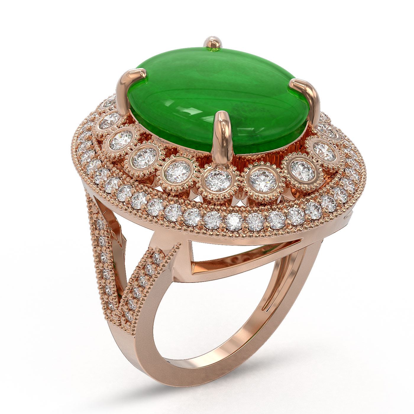 9.27 ctw Jade & Diamond Victorian Ring 14K Rose Gold