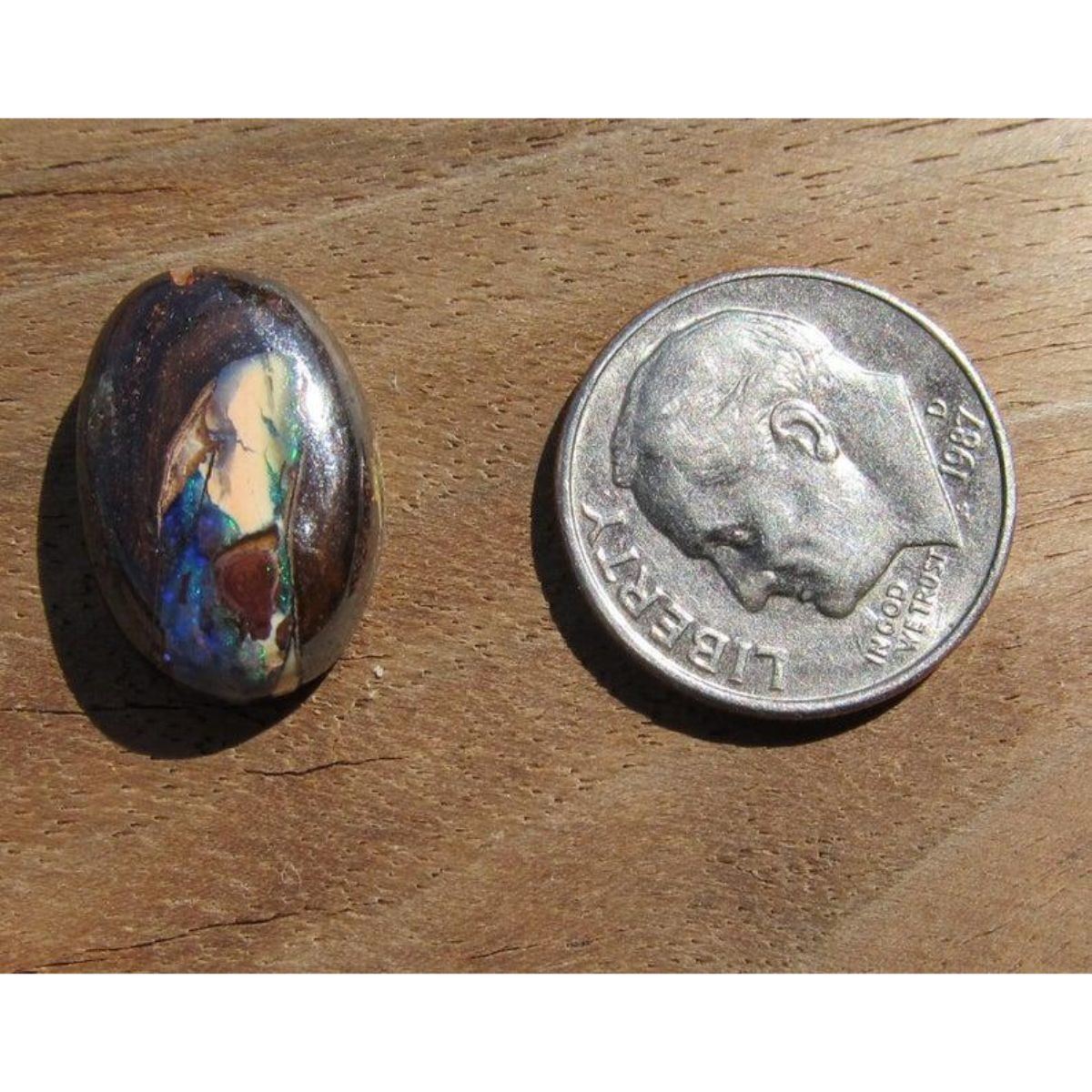 9.2ct Boulder Opal, natural untreated gemstone with a nice picture pattern, colors & flash. Perfect ring or pendant setting gemstone. Origin: Koroit Field; Queensland; Australia Appx. size: 16.5 x 11 mm - 5 mm thick. Â