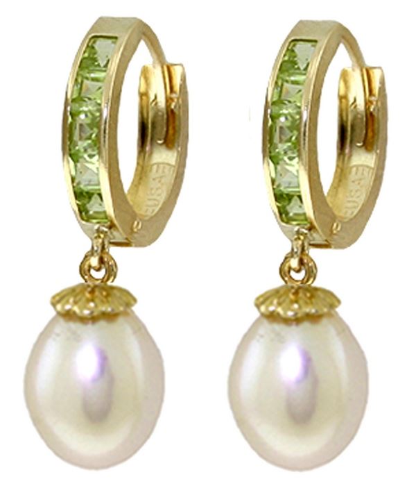 Genuine 14K Yellow Gold 9.3 ctw Peridot & Pearl Earrings
