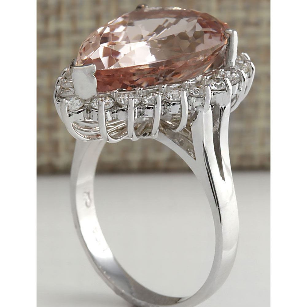 9.32 CTW Natural Peach Morganite And Diamond Ring In 18K Solid White Gold
