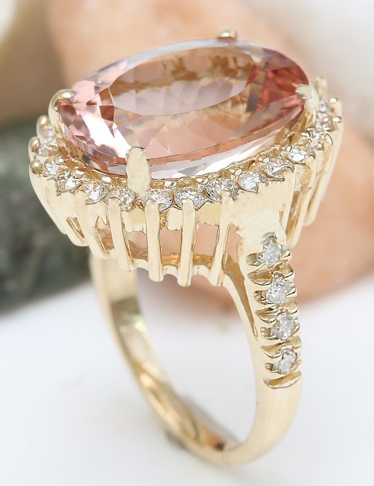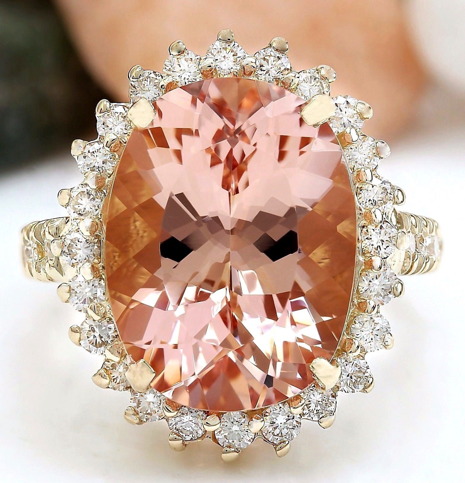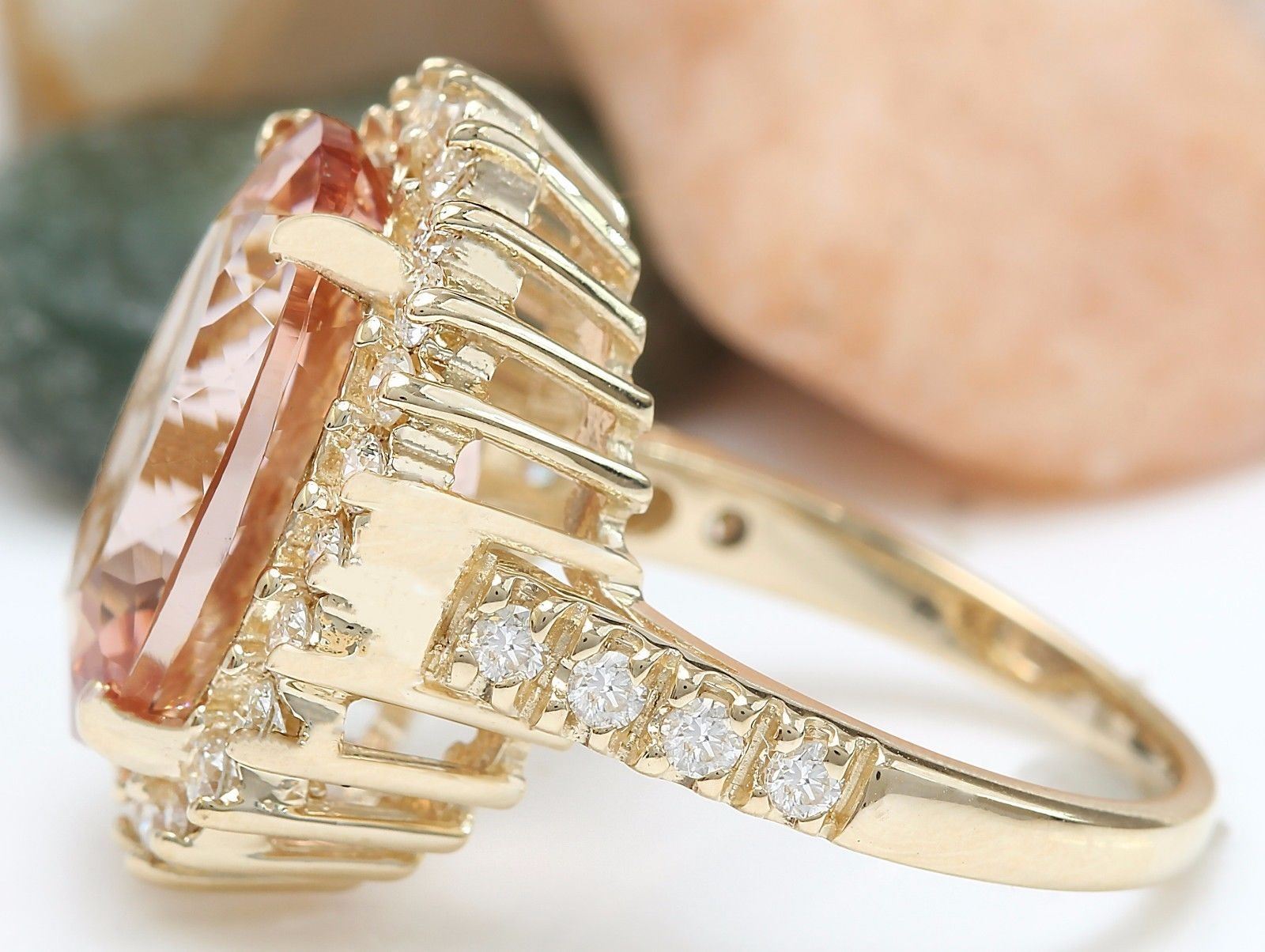 9.35 Carat Natural Morganite 18K Solid Yellow Gold Diamond Ring
