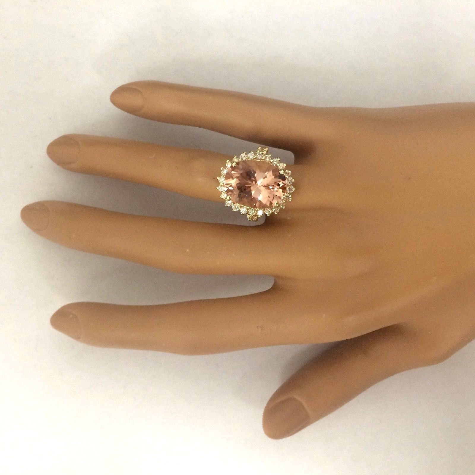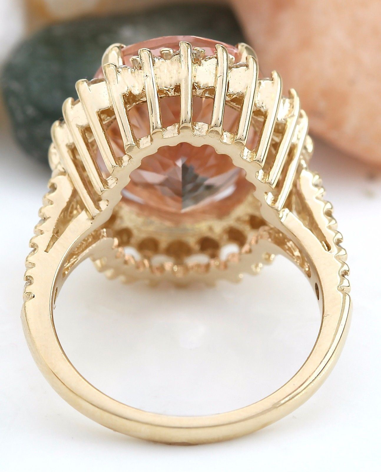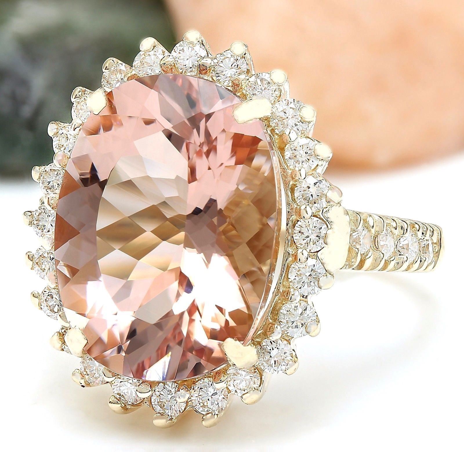 9.35 Carat Natural Morganite 18K Solid Yellow Gold Diamond Ring
