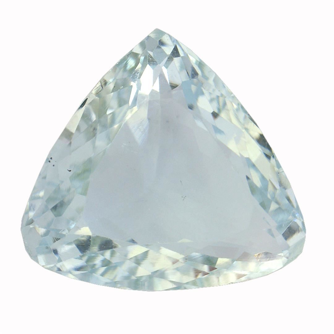 One triangle mixed cut natural aquamarine exact weight 9.35ct., clarity is slightly included, type I, medium, slightly grayish, very slightly greenish blue color, (GIA vslgB 5/2), cut is good. Westfield Appraised at $3,600.00.